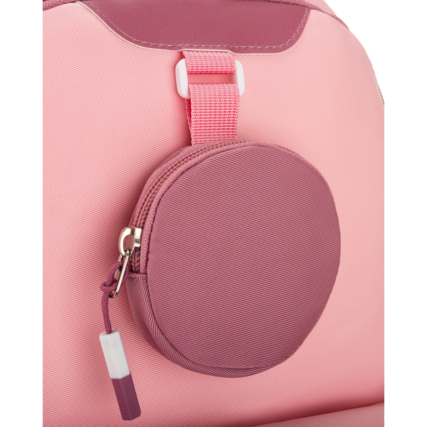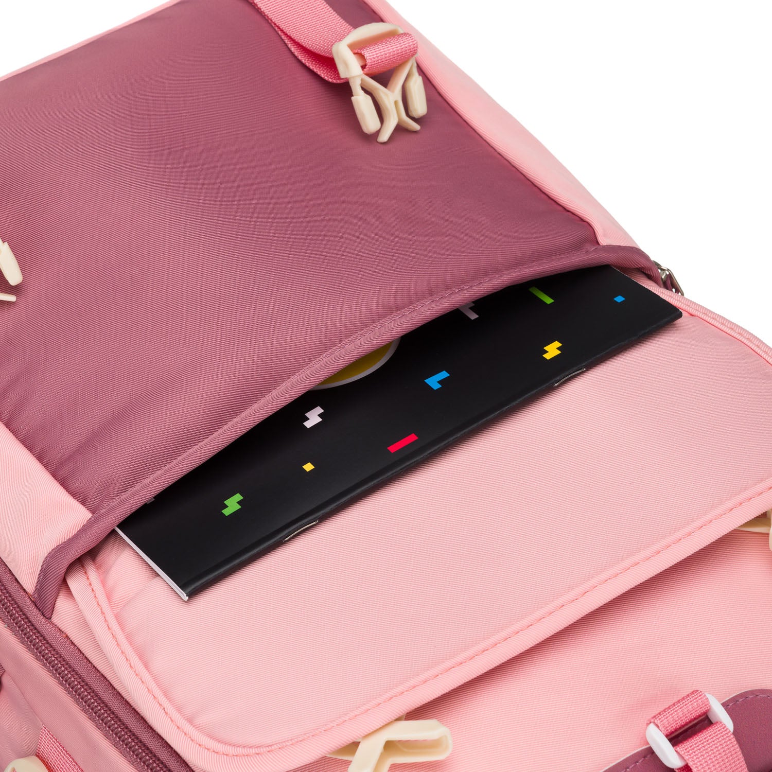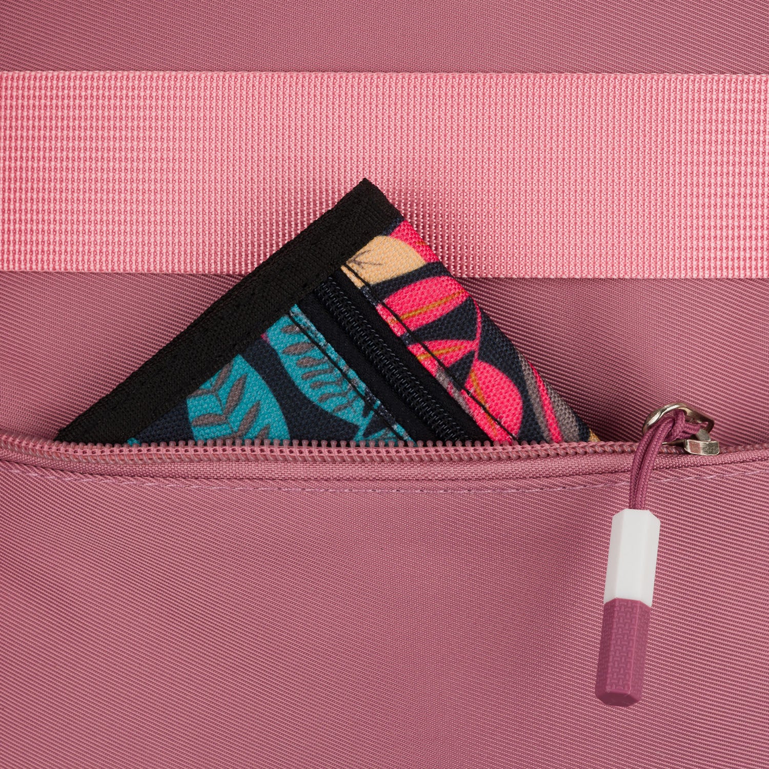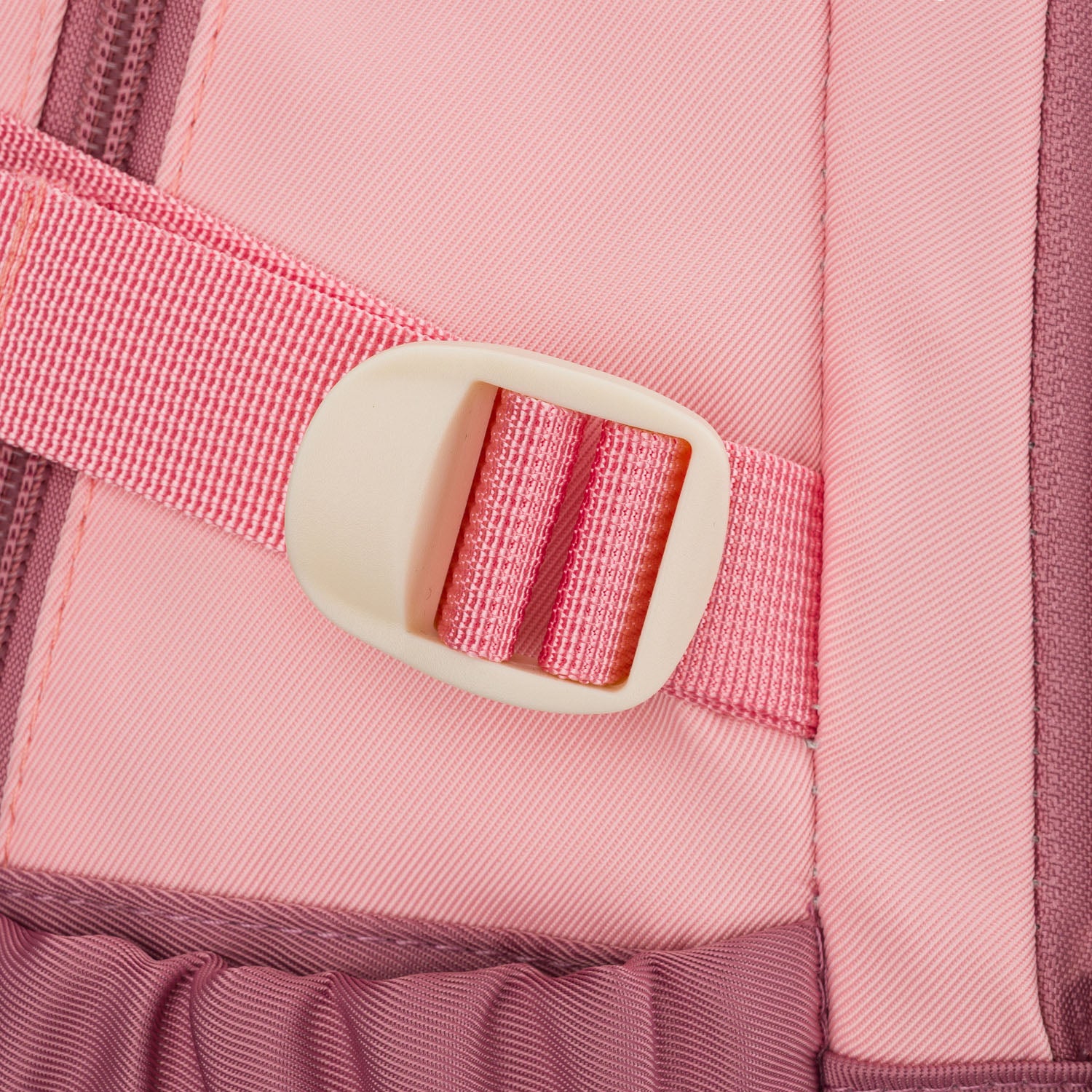 Peterson rozā liela poliestera mugursoma ar diviem nodalījumiem un piecām kabatām, kas lieliski piemērota ikdienas lietošanai.