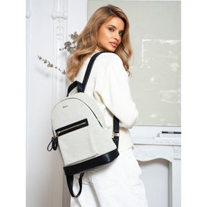 Peterson sieviešu rokassoma, kas izgatavota no īstas ādas, bēšā un melnā krāsā, lieliski piemērota ikdienas lietošanai.