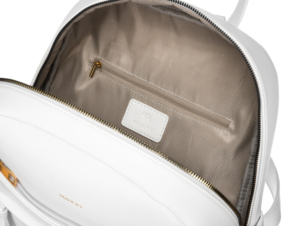 Rovicky liela balta sieviešu rokassoma no mākslīgās ādas, kas lieliski piemērota ikdienas lietošanai.