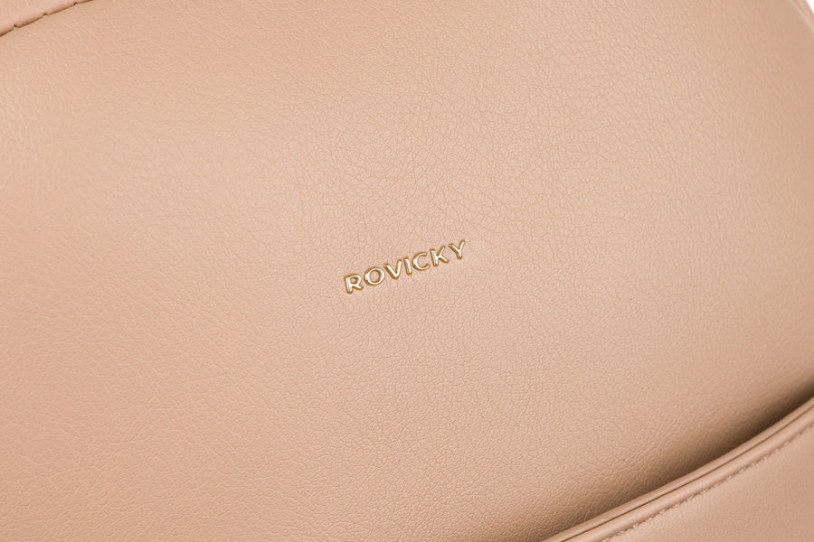 Rovicky liela bēša sieviešu rokassoma no mākslīgās ādas, kas lieliski piemērota ikdienas lietošanai.