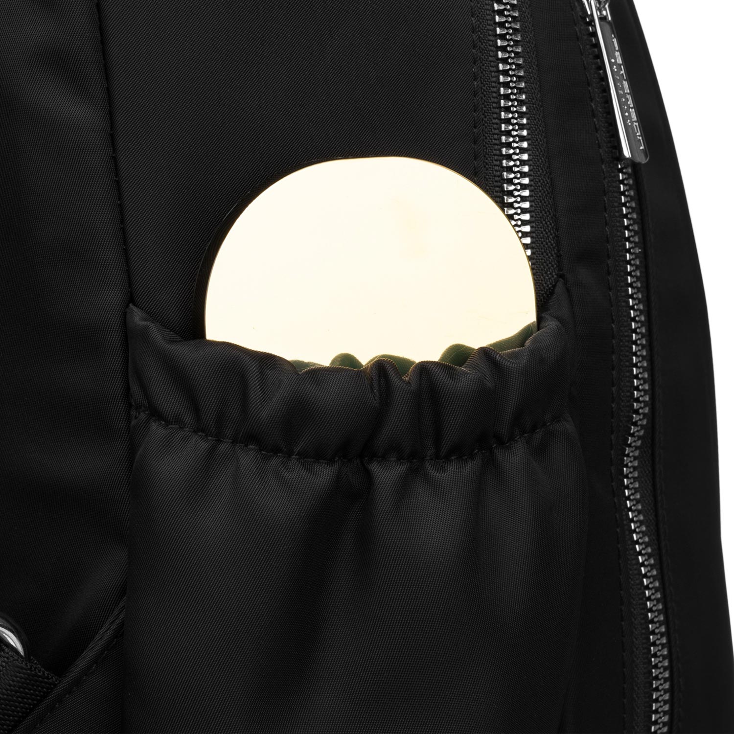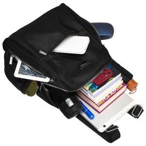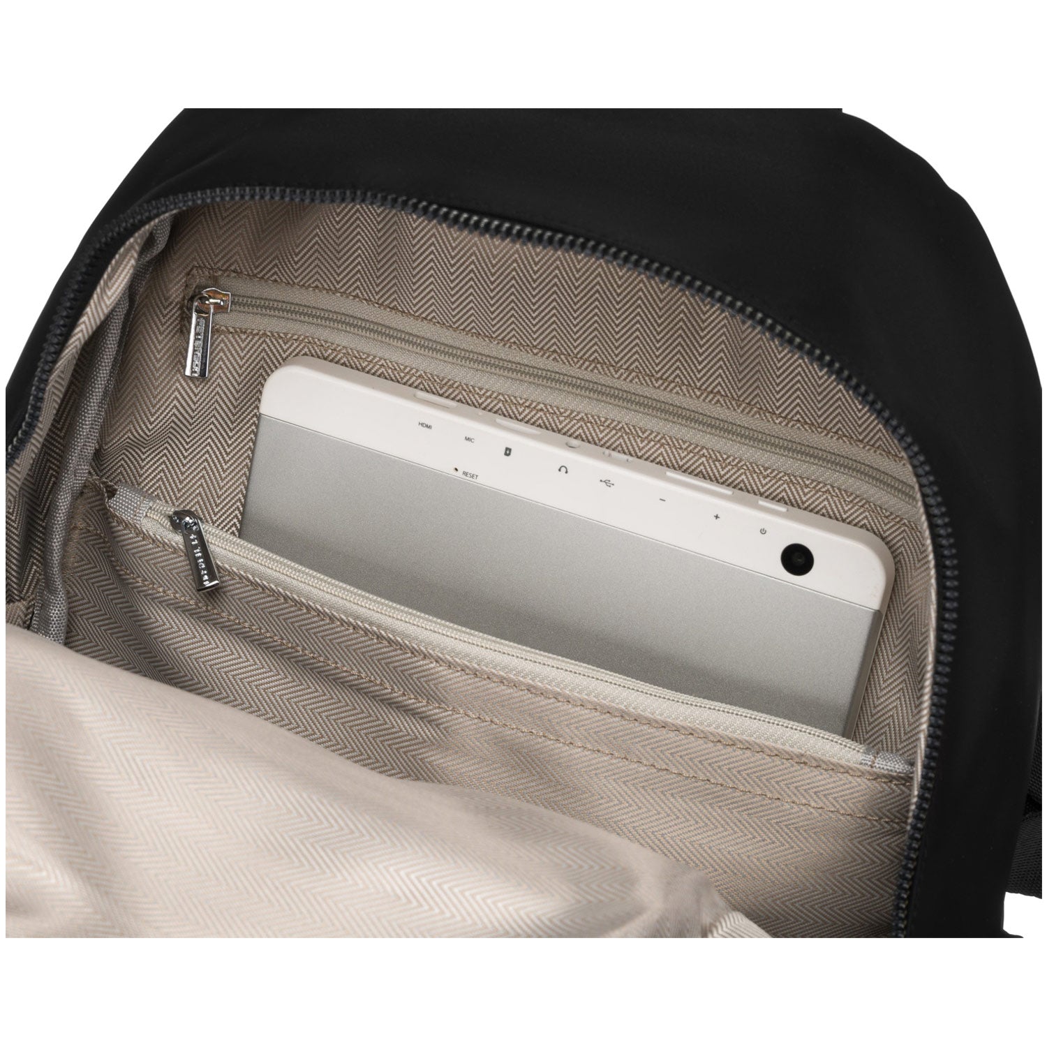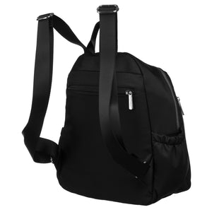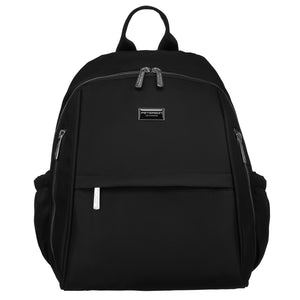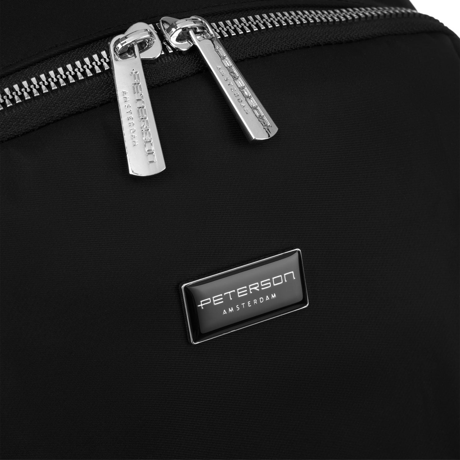 Peterson liela melna sieviešu mugursoma, kas izgatavota no neilona, ​​ideāli piemērota ikdienas lietošanai.
