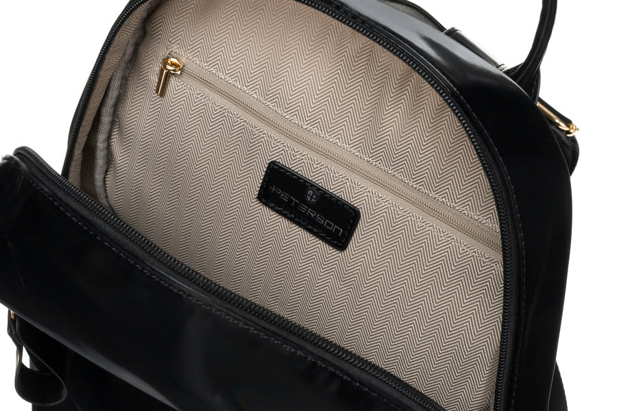 Peterson melnā sieviešu mugursoma ir stilīga izvēle ikdienas lietošanai.