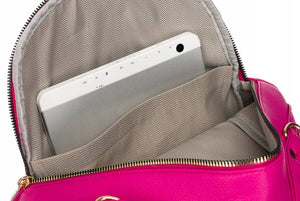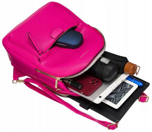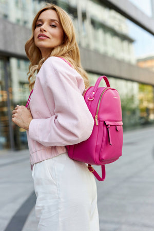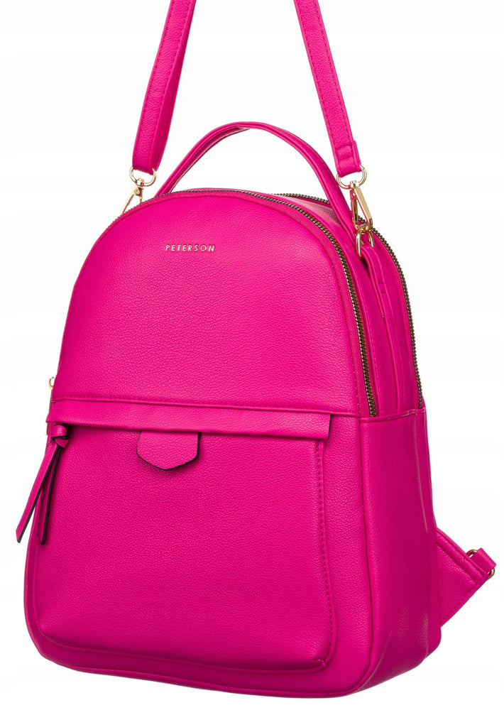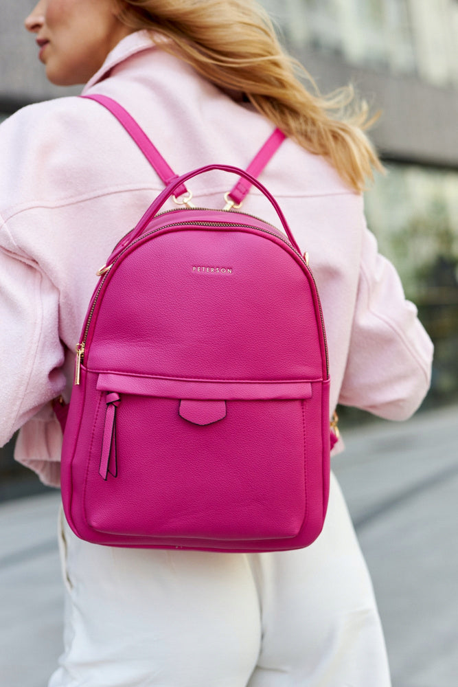 Peterson rozā sieviešu mugursoma, kas izgatavota no mākslīgās ādas, ir stilīga izvēle ikdienas lietošanai.