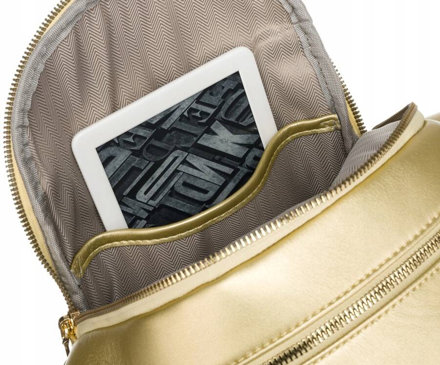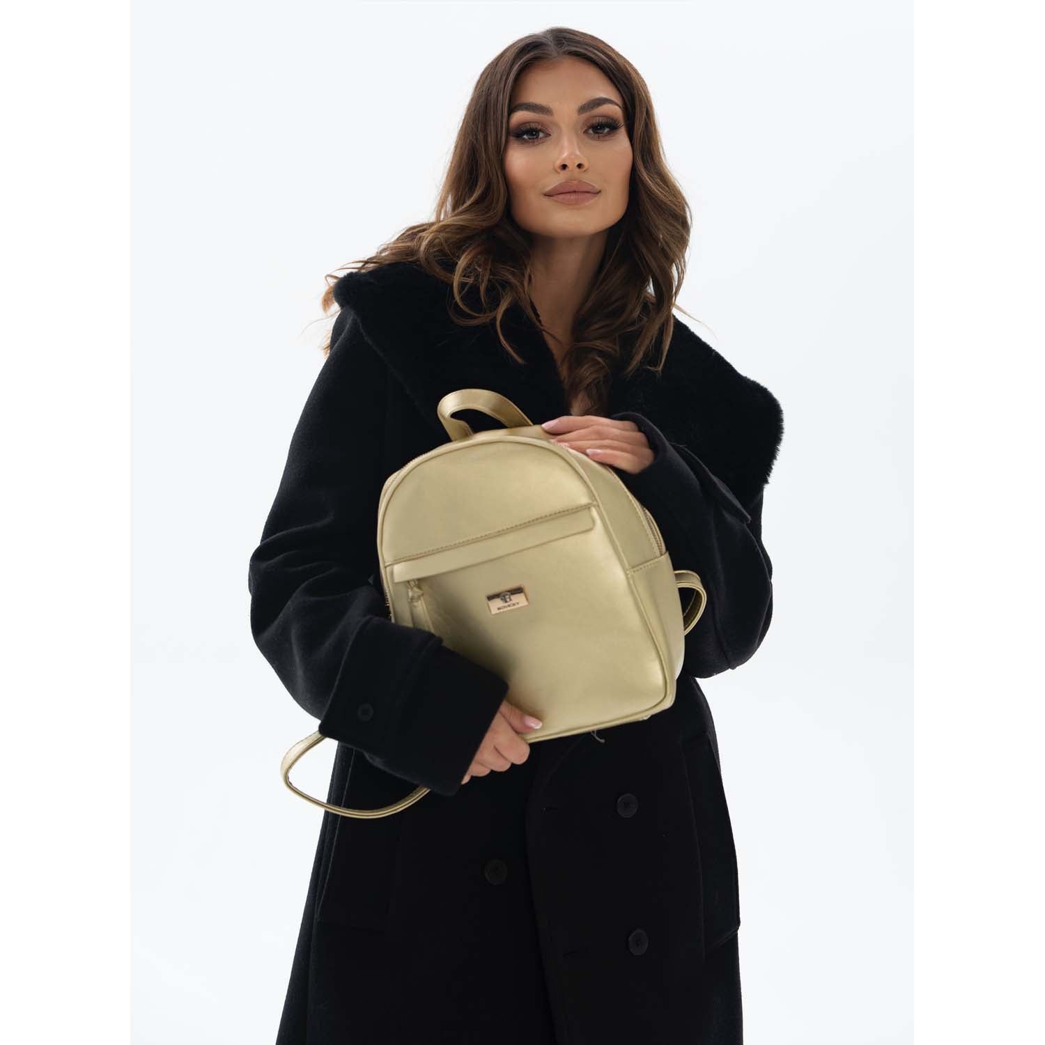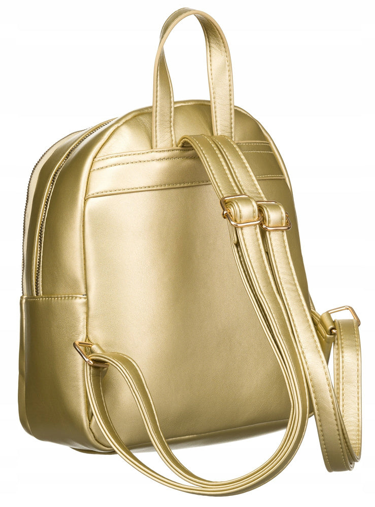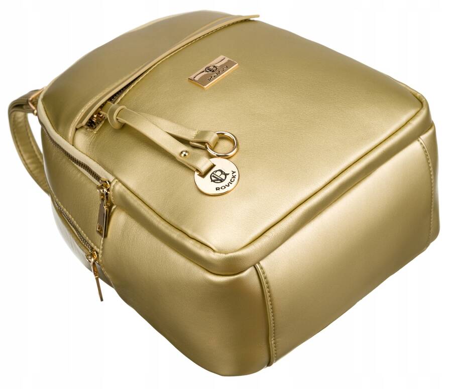 Rovicky sieviešu mugursoma, izgatavota no mākslīgās ādas, zelta krāsā, lieliski piemērota ikdienas lietošanai.