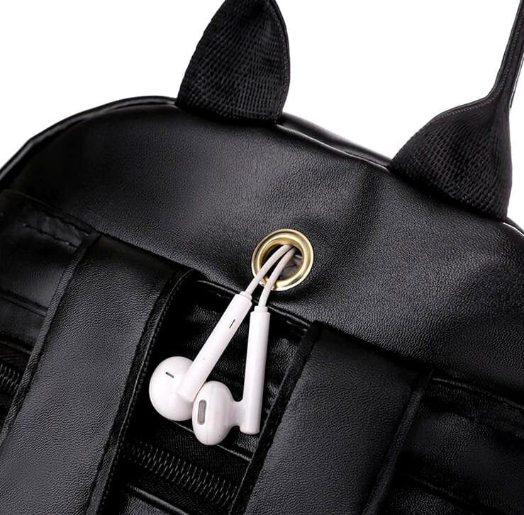 Mugursomas aizmugurē ir kabata ar rāvējslēdzēju + caurums austiņu vadiem