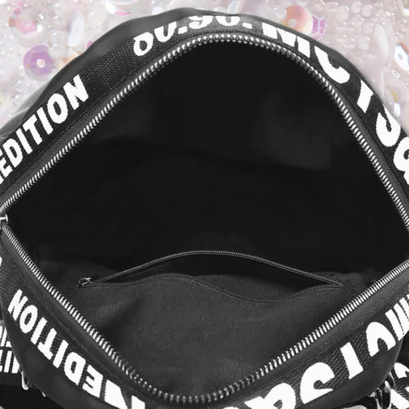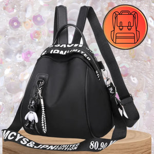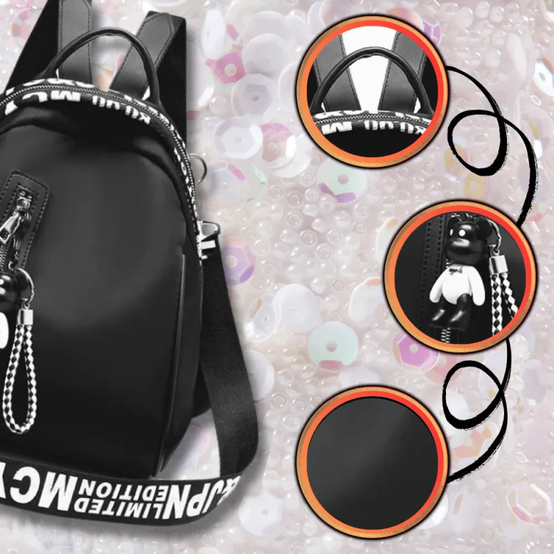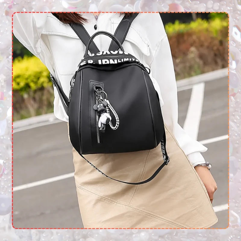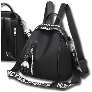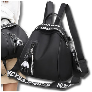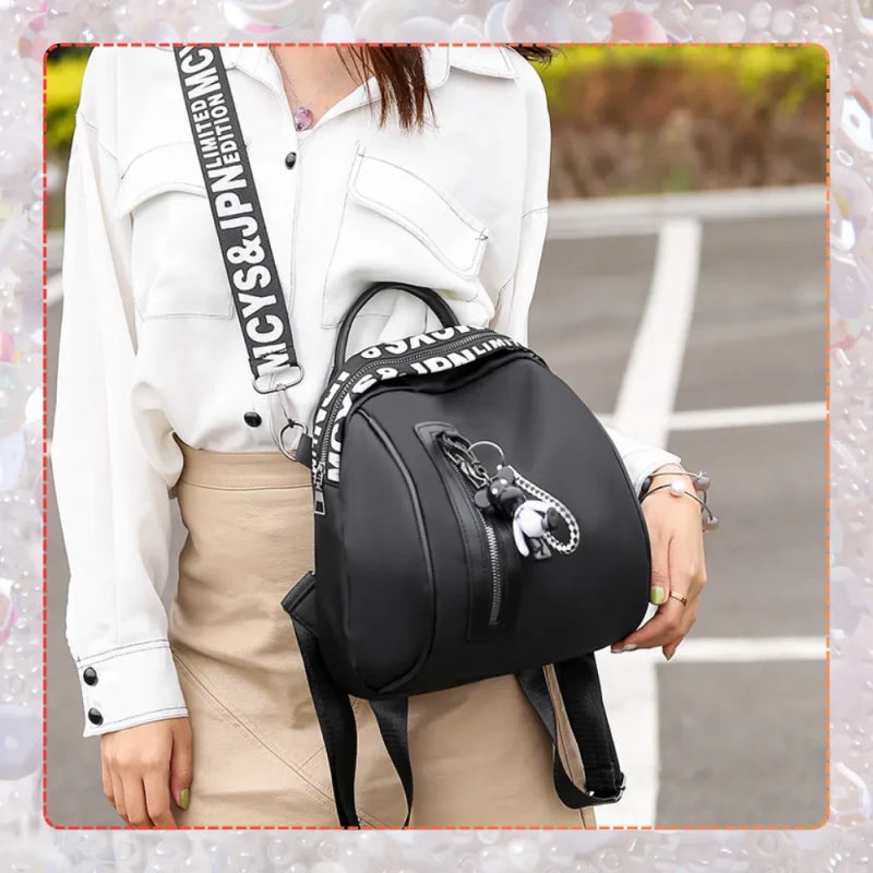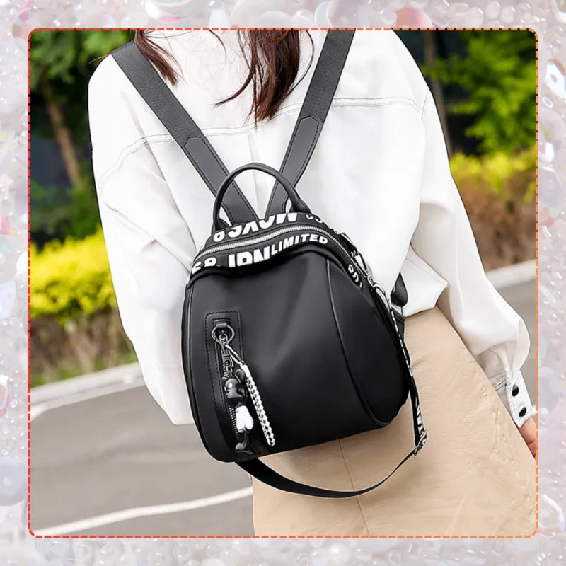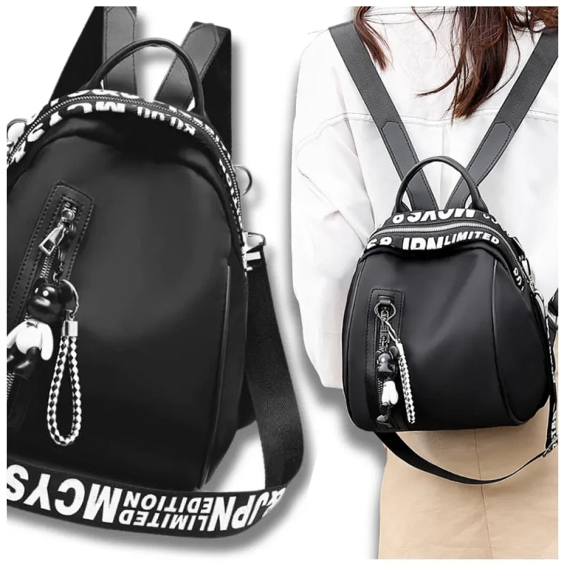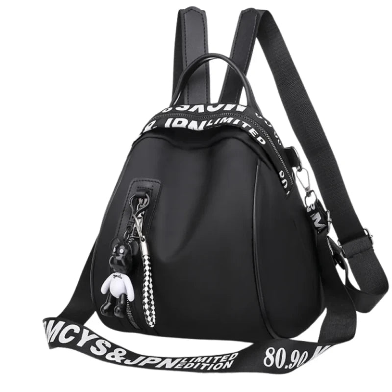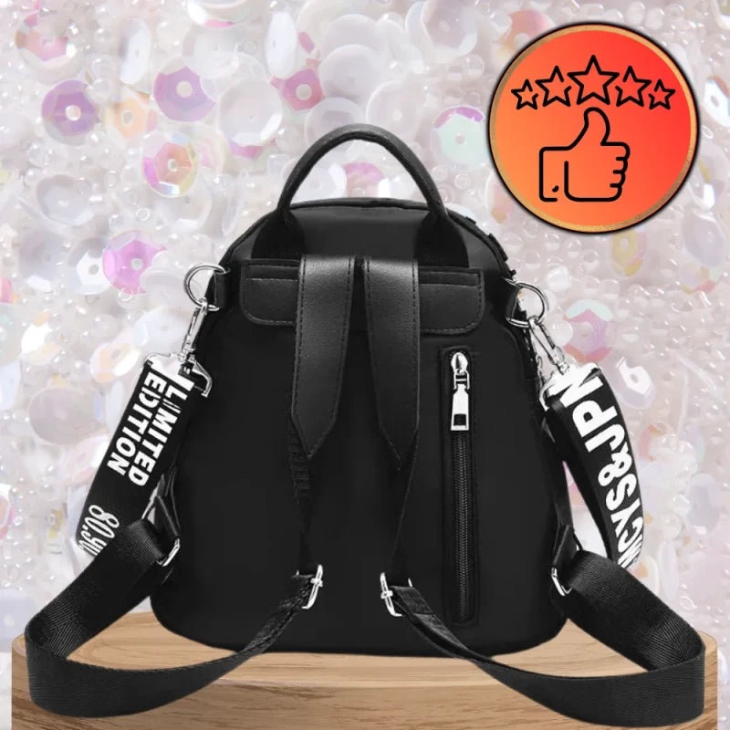 - Ir papildu siksna, kas ļauj mugursomu nēsāt pār plecu kā rokassomu.