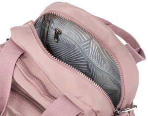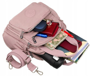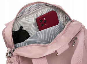 Šī mugursoma ir izgatavota no augstas kvalitātes neilona, kas padara to izturīgu un vieglu. To var nēsāt kā rokassomu vai mugursomu, nodrošinot elastību un ērtības.