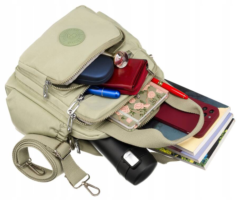 • Viens ietilpīgs nodalījums ar 9 papildu kabatām lietu kārtības uzturēšanai.