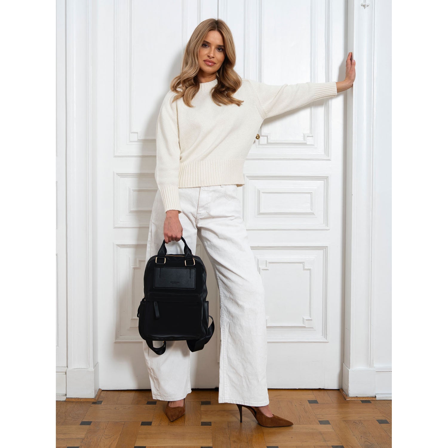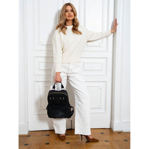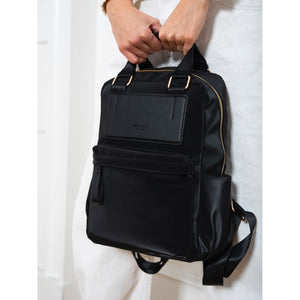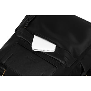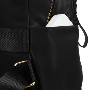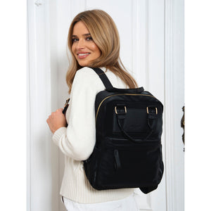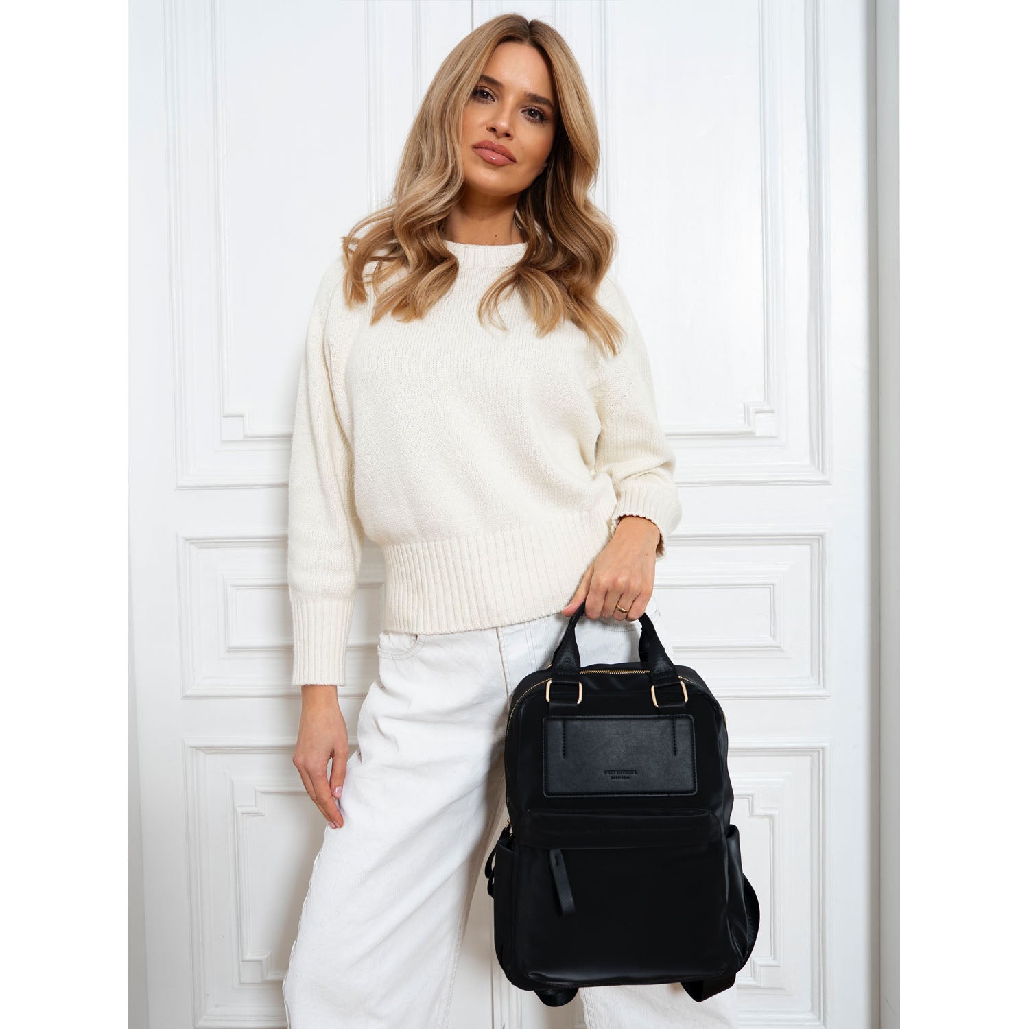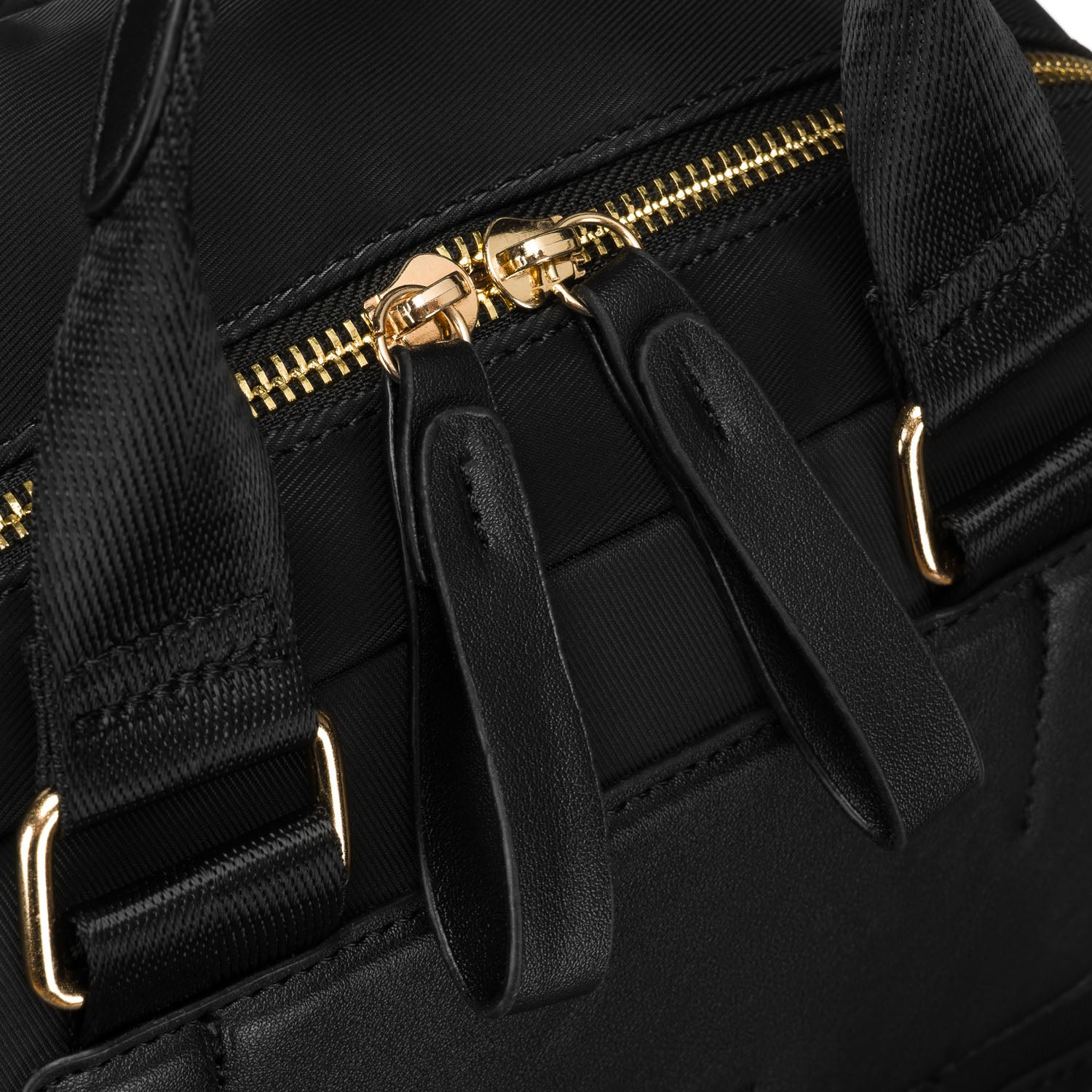 Sieviešu pilsētas mugursoma, melna, neilons un mākslīgā āda