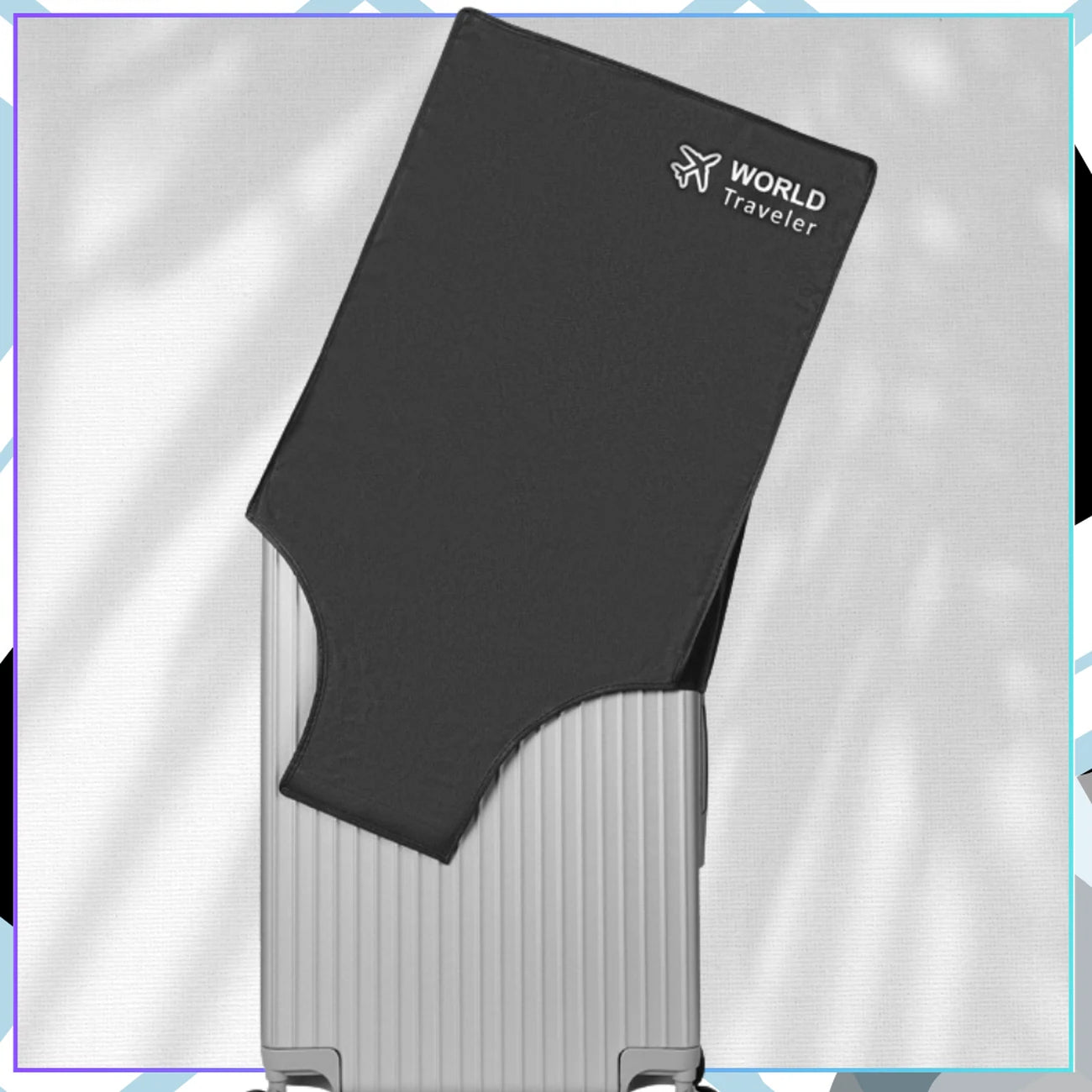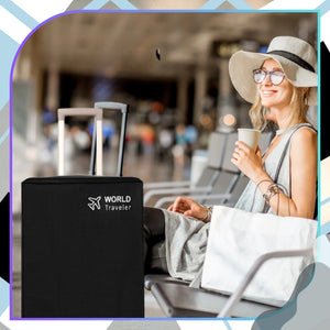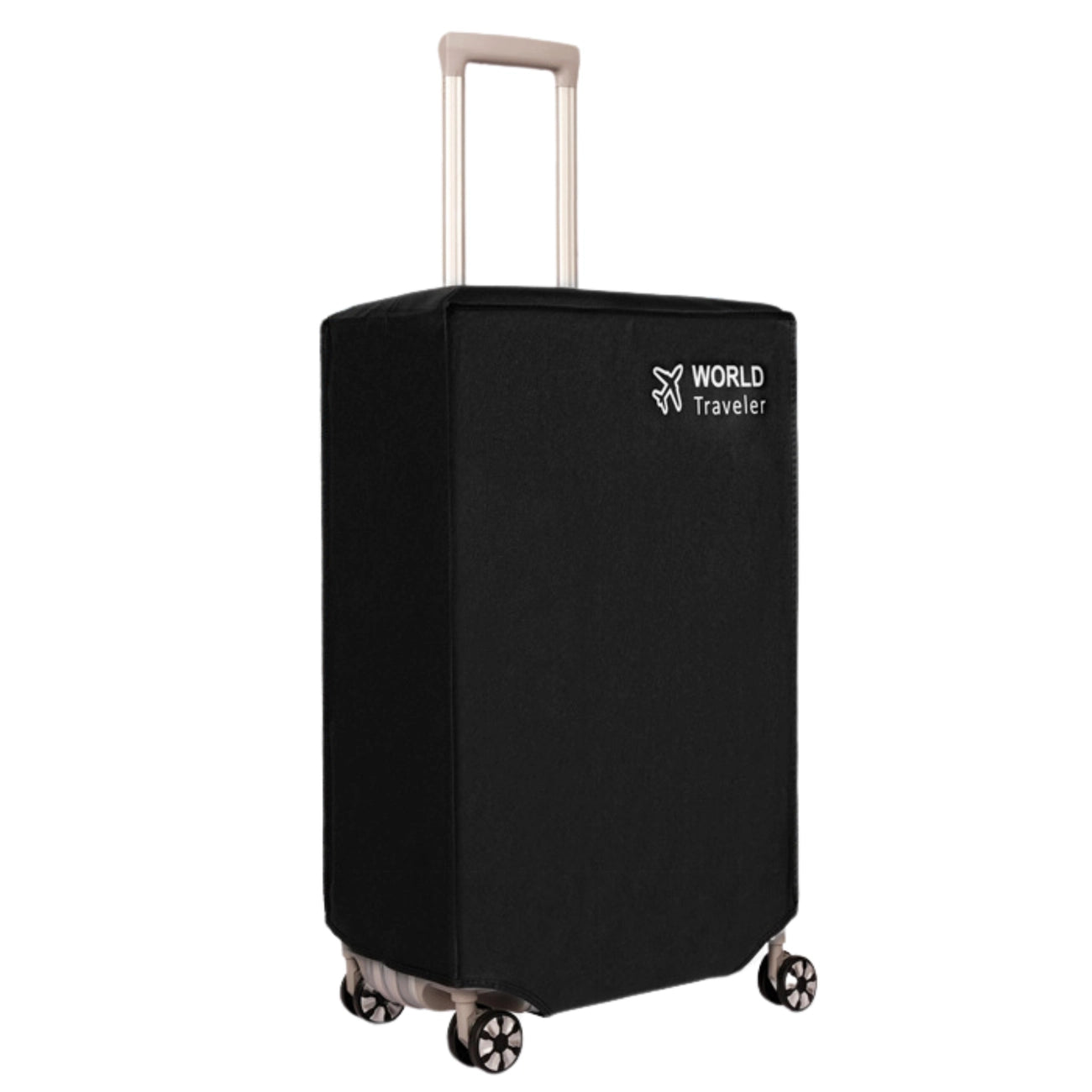 Šis melnais bagāžas pārvalks ar baltu WORLD Traveler logotipu ir lieliska izvēle, lai aizsargātu savu bagāžu ceļojuma laikā.