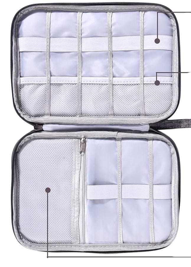Lietotāja priekšrocības: Šis maciņš palīdz sakārtot un viegli atrast lādētājus, USB kabeļus, atmiņas kartes, austiņas, pārnēsājamos akumulatorus un citus piederumus. Tas ir ideāli piemērots ceļošanai, jo ir viegls, kompakts un ērti ietilpst mugursomā vai čemodānā.