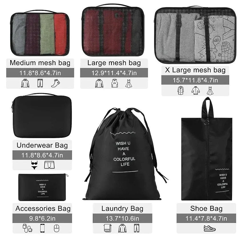 Ceļojumu organizatora komplekts jūsu čemodānam