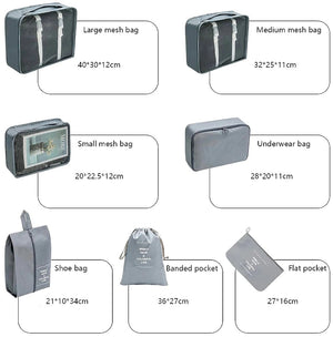 Šis ceļojumu organizatora komplekts ir ideāls risinājums jūsu čemodānam. Izgatavoti no ūdensnecaurlaidīga materiāla, šie maisiņi ir ideāli piemēroti mitru peldkostīmu glabāšanai. Tie palīdz uzturēt jūsu čemodānu kārtībā un atvieglo izsaiņošanu jaunā vietā, kā arī atvieglo priekšmetu atrašanu čemodānā.