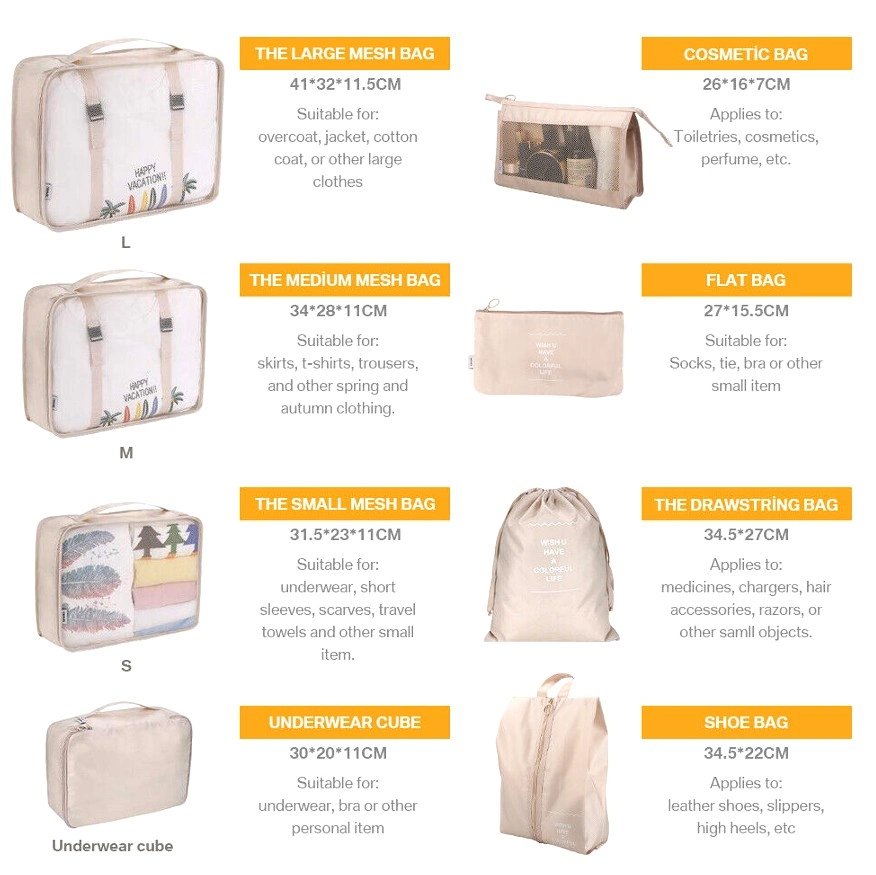 Šis ceļojumu organizatora komplekts ir lielisks risinājums jūsu čemodānam. Tas palīdzēs jums saglabāt kārtību un vieglāk atrast lietas ceļojuma laikā.