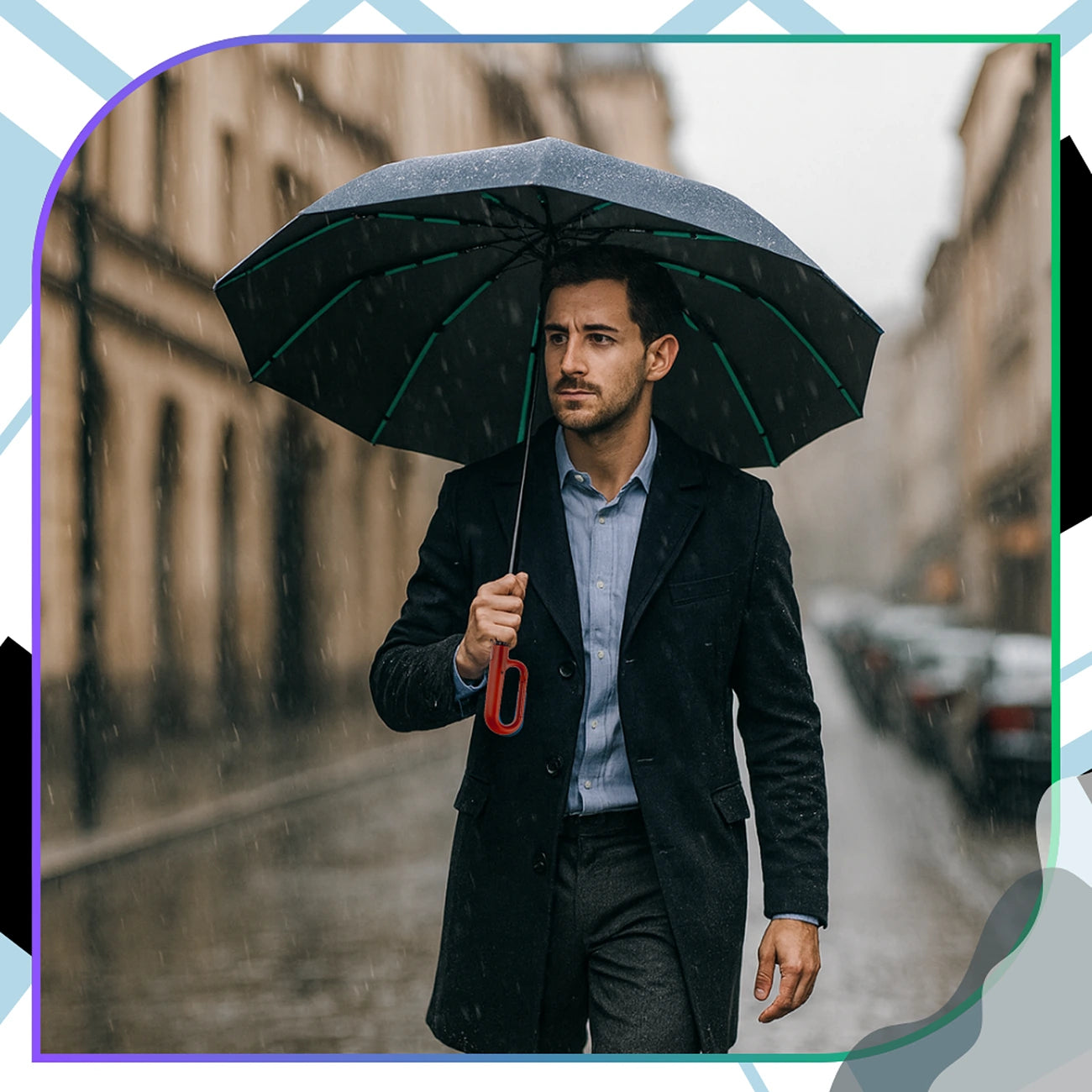 Šis elegants saliekamais lietussargs apvieno stilu, funkcionalitāti un uzticamību. Lieliski piemērots gan sievietēm, gan vīriešiem, ideāla izvēle jebkuram laikam.