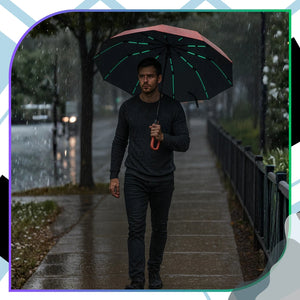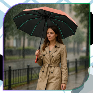 Elegants sarkans lietussargs ar zaļiem elementiem, lieliski aizsargā pret lietu un sauli. Lietussargam ir ērtā plastmasas rokturis ar karabīni un automātiskās atvēršanas un aizvēršanas poga.