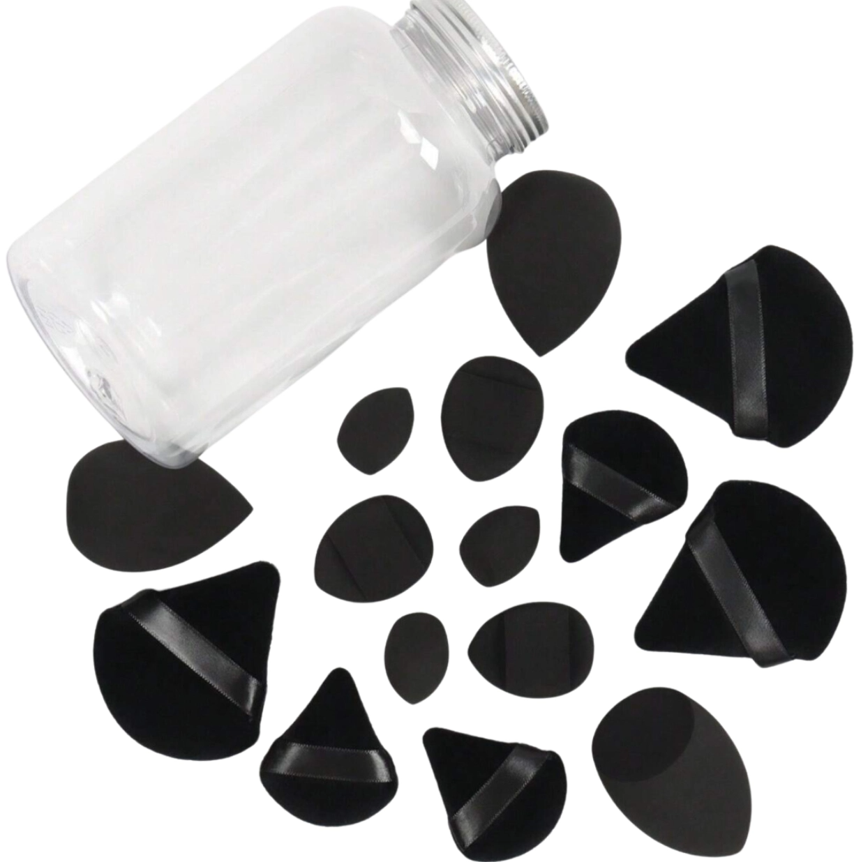 Visi šie rīki ir ērti iepakoti stikla burkā, kas ne tikai aizsargā sūklīšus, bet arī piešķir stilīgu izskatu jūsu kosmētikas kolekcijai.