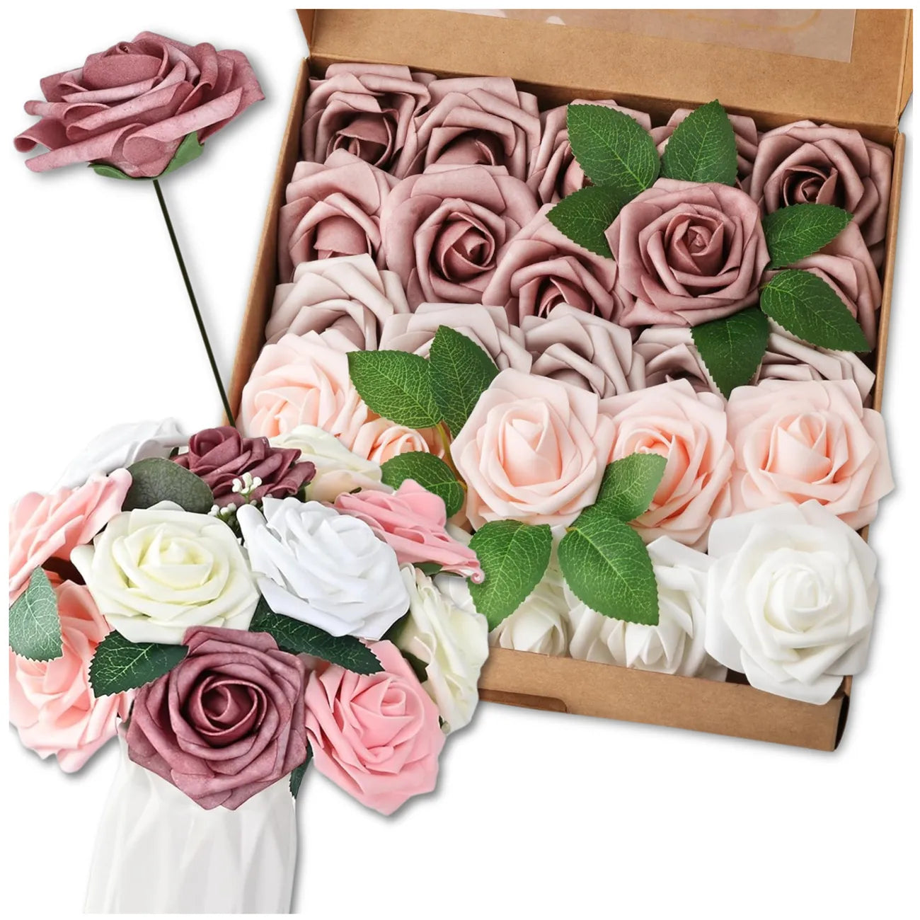 Dekoratīvas mākslīgās rozes, 25 gab., krāsainas