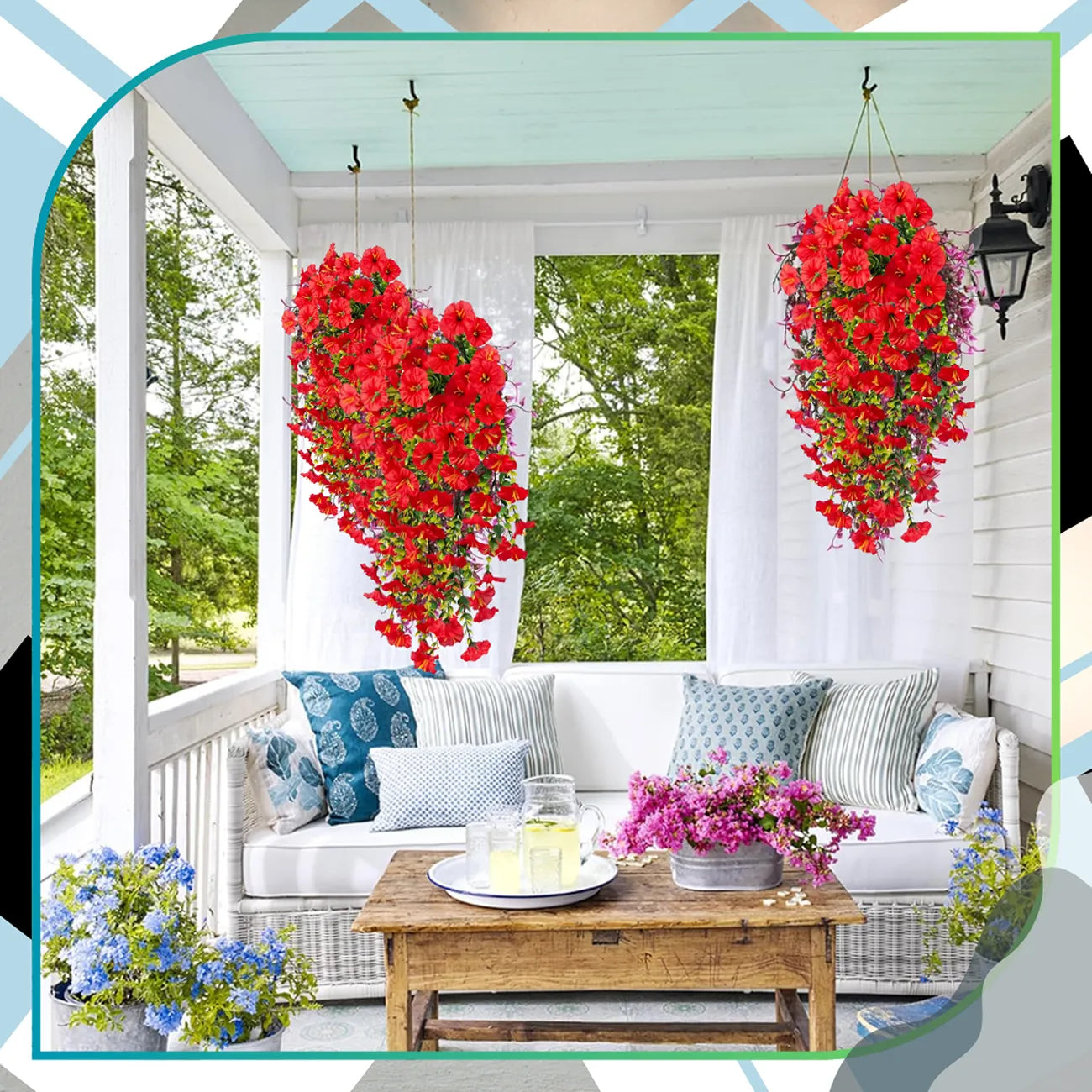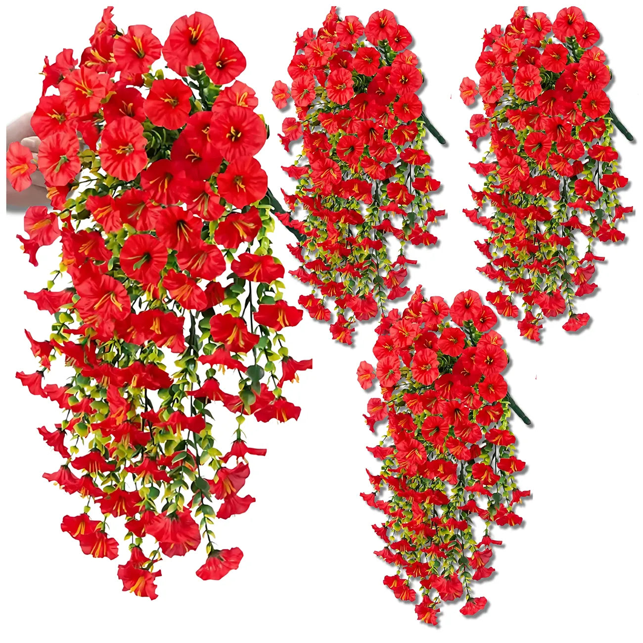 Šis mākslīgo vīteņpuķu komplekts piešķirs jūsu interjeram spilgtu akcentu. Izgatavots no izturīgas plastmasas, kas lieliski atdarina īstus ziedus, šis komplekts ir lieliska estētikas un praktiskuma kombinācija – nav nepieciešams laistīt, neizbalē. Piemērots gan klasiskam, gan modernam interjeram, kā arī balkoniem, terasēm, dārziem vai hallēm. Elastīgie kāti ļauj tos viegli veidot un aptīt ap margām vai dekoratīvām restēm.