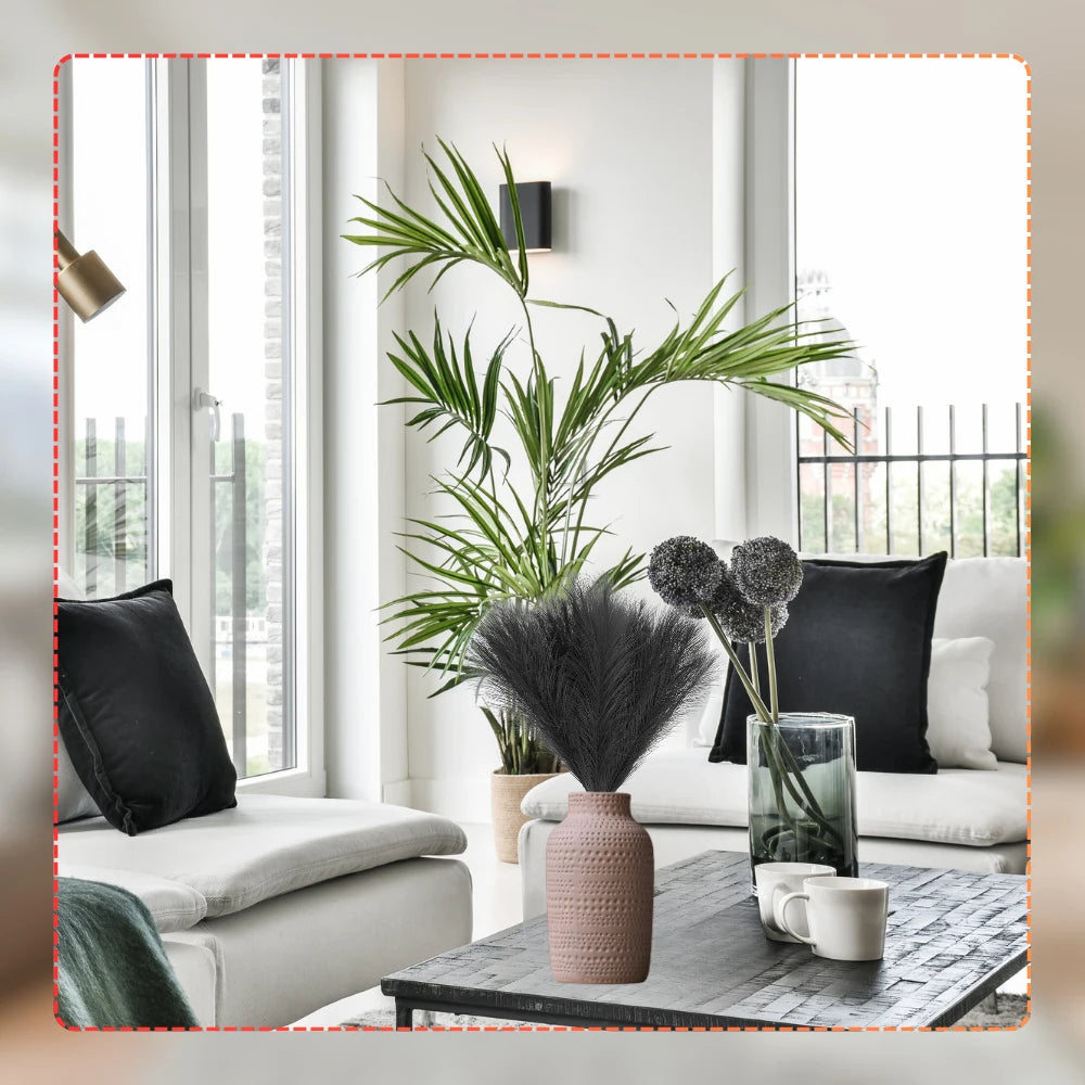 Unikālas priekšrocības: Augstas kvalitātes materiāls nodrošina ilgstošu dabisku izskatu, kas piemērots dažādu stilu interjeriem, sākot no boho līdz minimālistiskam. Mākslīgā pampas zāle ir videi draudzīga izvēle.