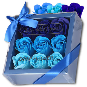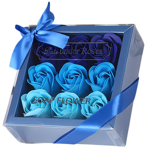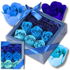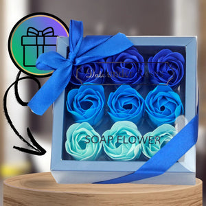 Dekoratīvas zilas ziepju rozes, 9 gab. dāvanu komplekts
