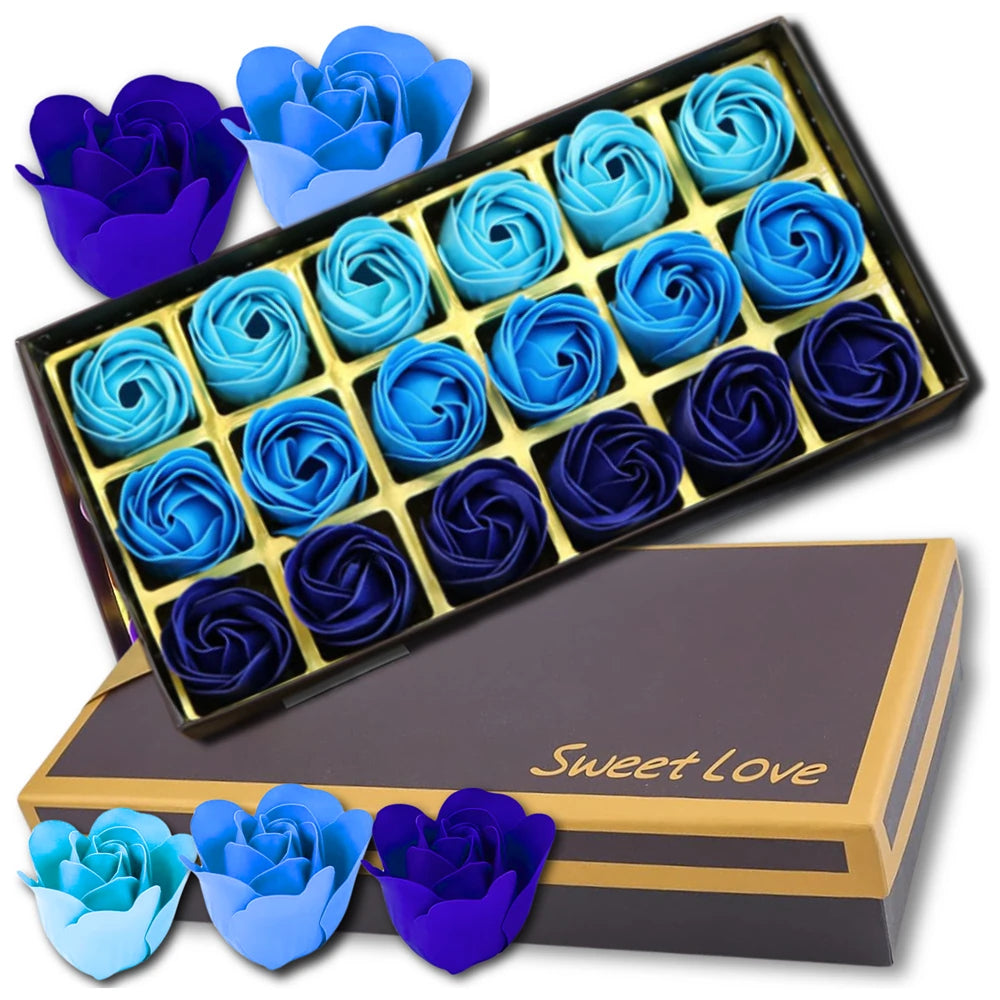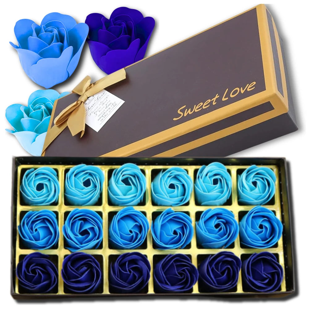 Dekoratīvas ziepju rozes, 18 gab., zilas, dāvanu komplekts