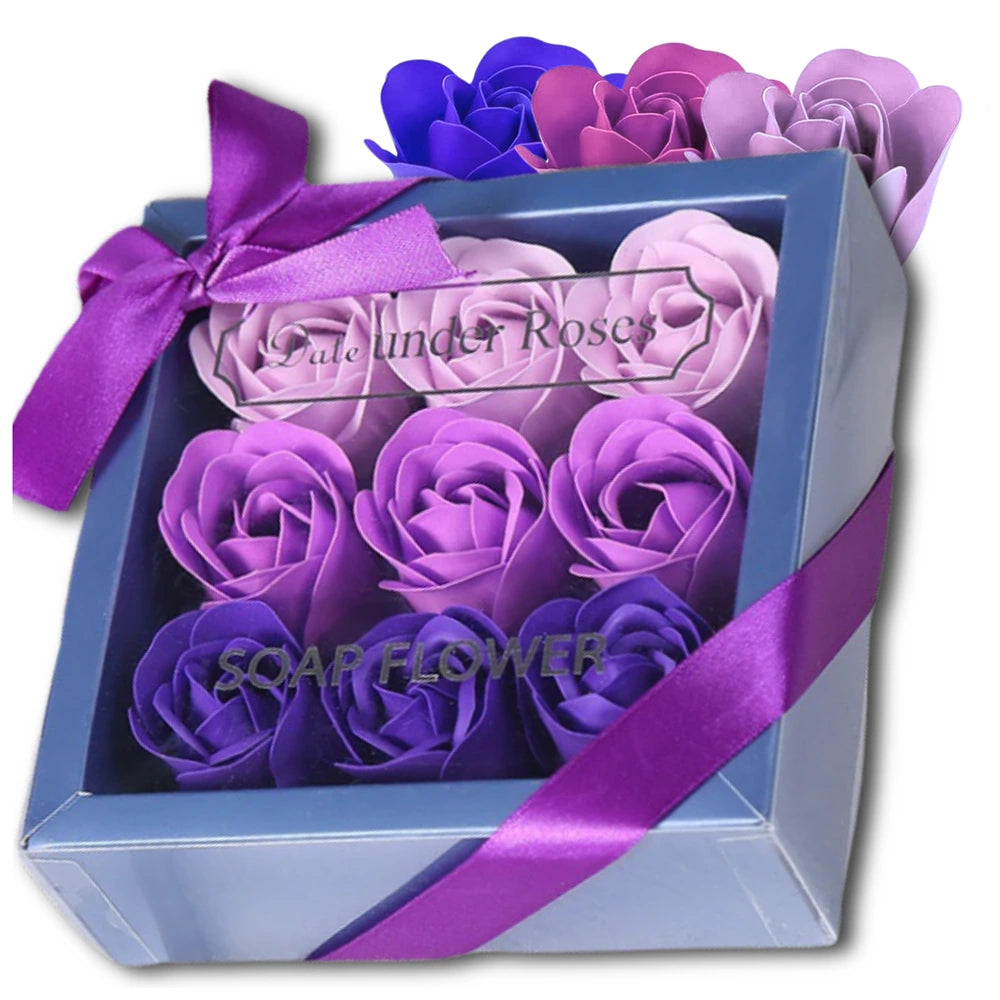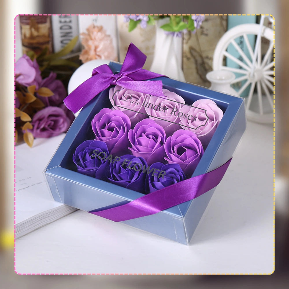 Dekoratīvas ziepju rozes, violetas, 9 gab. dāvanu komplekts