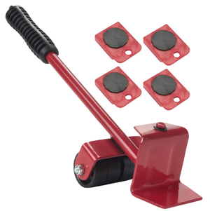 Pirms rullīšu statīvu ievietošanas kravas pacelšanai tiek izmantota tērauda svira.