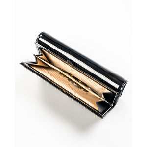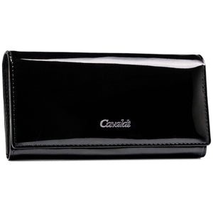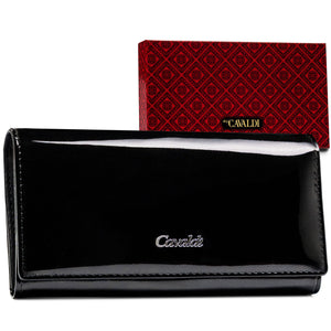 Elegants 4U CAVALDI sieviešu maks, kas izgatavots no melnas lakotas ādas.