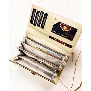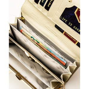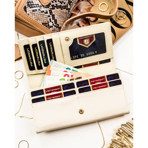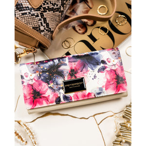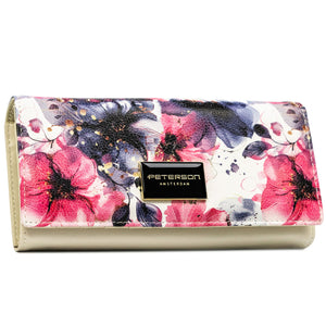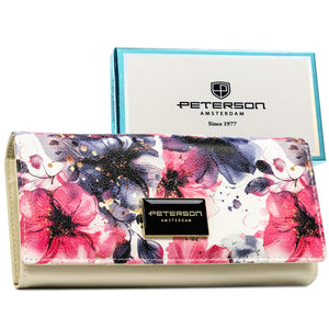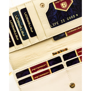 Peterson sieviešu maks, izgatavots no mākslīgās ādas, bēšā krāsā, ar aizdari.