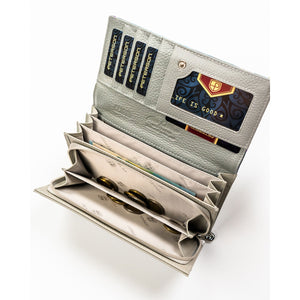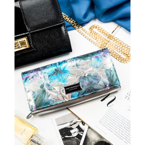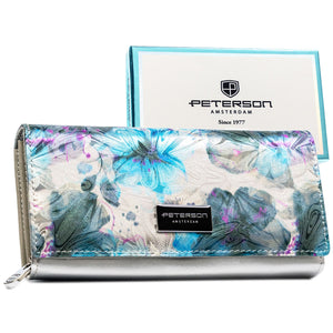 Peterson sieviešu maks, izgatavots no mākslīgās ādas, zilā krāsā, ar RFID aizsardzību.