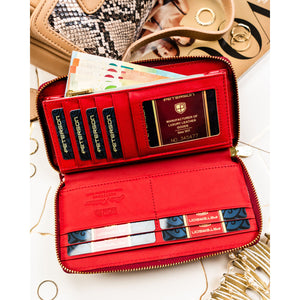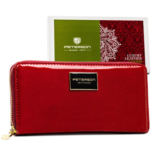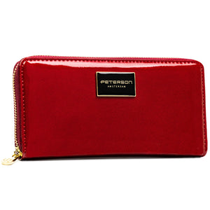 Peterson sarkans sieviešu maks, kas izgatavots no īstas ādas ar RFID aizsardzību.