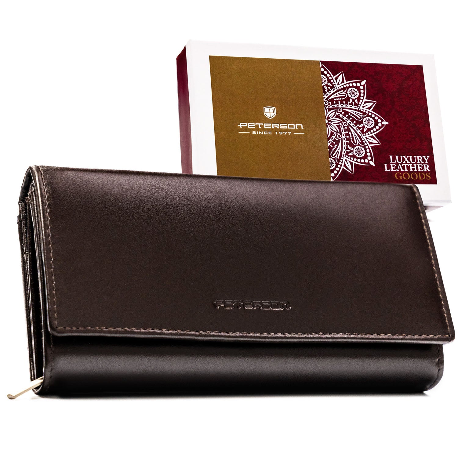 Ši didelė moteriška piniginė Peterson – praktiškas ir stilingas pasirinkimas kasdieniam naudojimui, kai svarbu patogiai sutalpinti visas reikalingas korteles ir grynuosius pinigus.