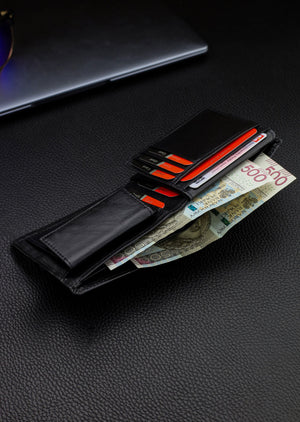 - ➕ Funkcionāla iekšpuse – 9 karšu vietas, 2 nodalījumi banknotēm, monētu kabata ar sprādzi, foto lodziņš.
