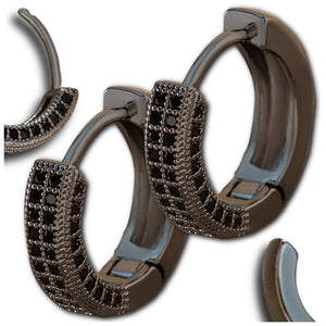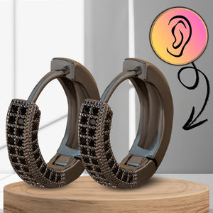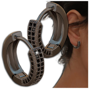 Klasiski melni sieviešu auskari, dekorēti ar cirkoniem. Lieliski piemēroti jebkuram gadījumam un stilam. Krāsa: melna. Materiāls: rotaslietu metāls, varš.