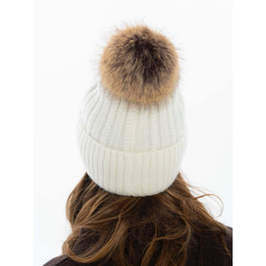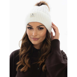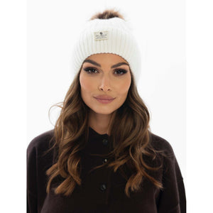 Balta sieviešu ziemas cepure no angoras un akrila ar noņemamu bumbuli - silta un ērta ikdienas valkāšanai.