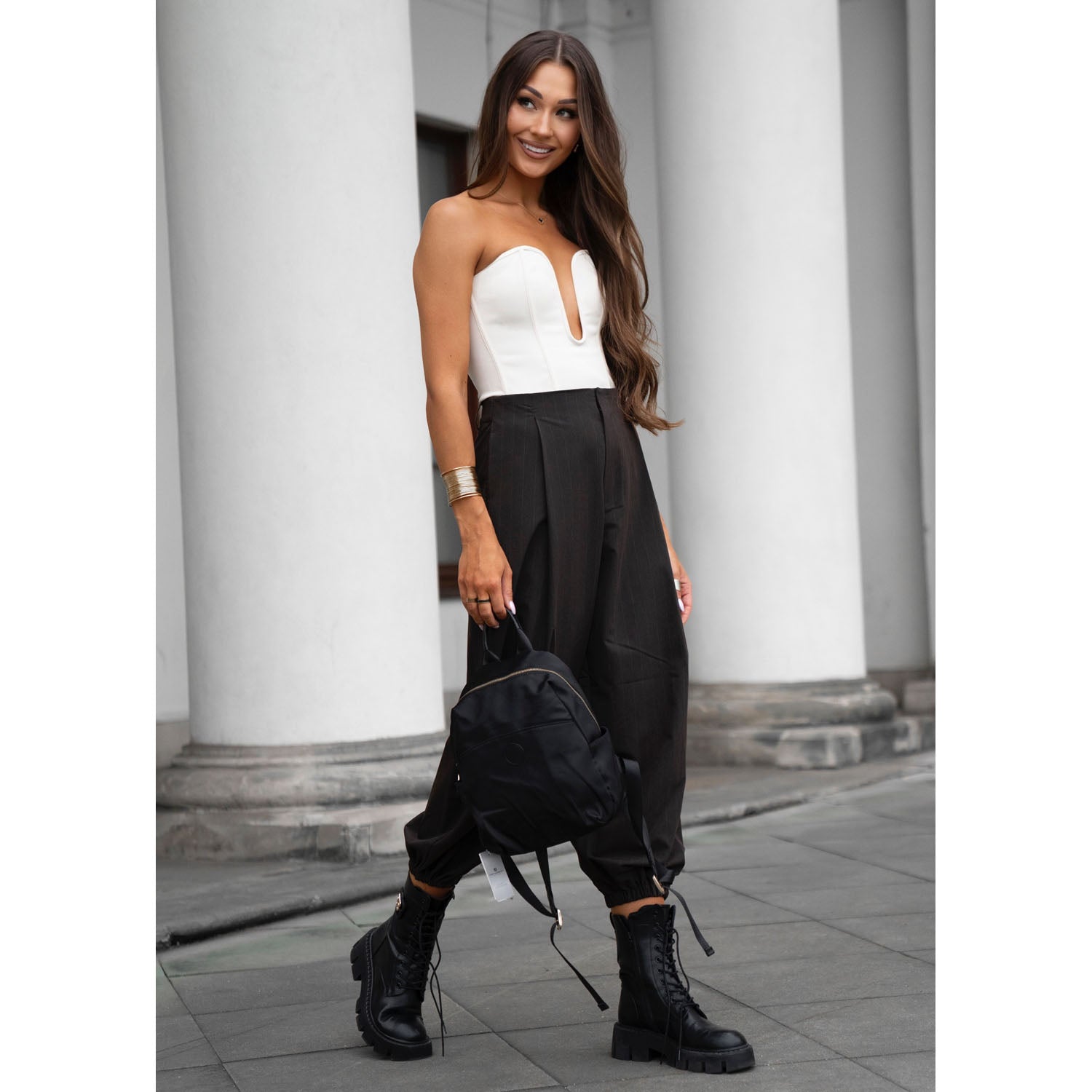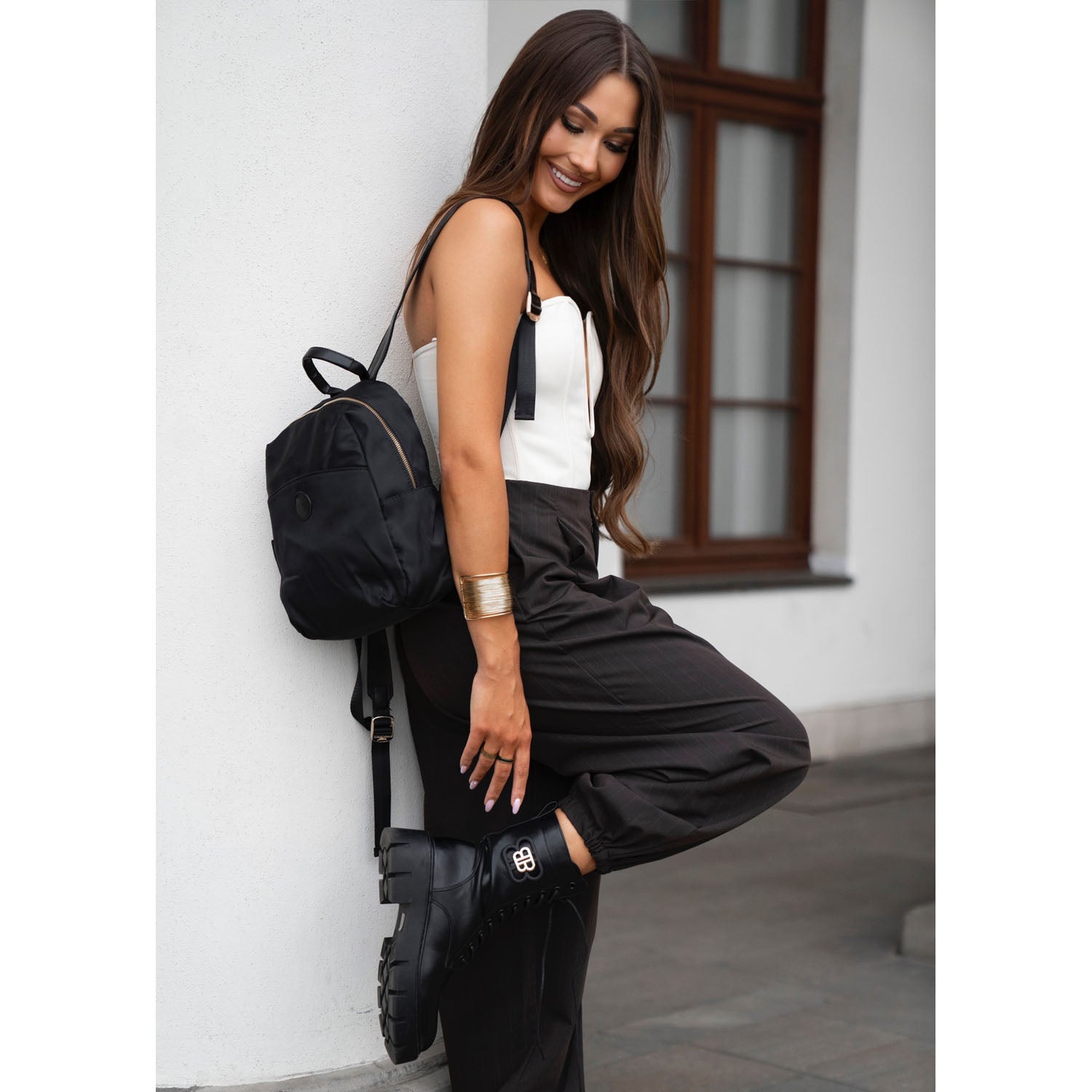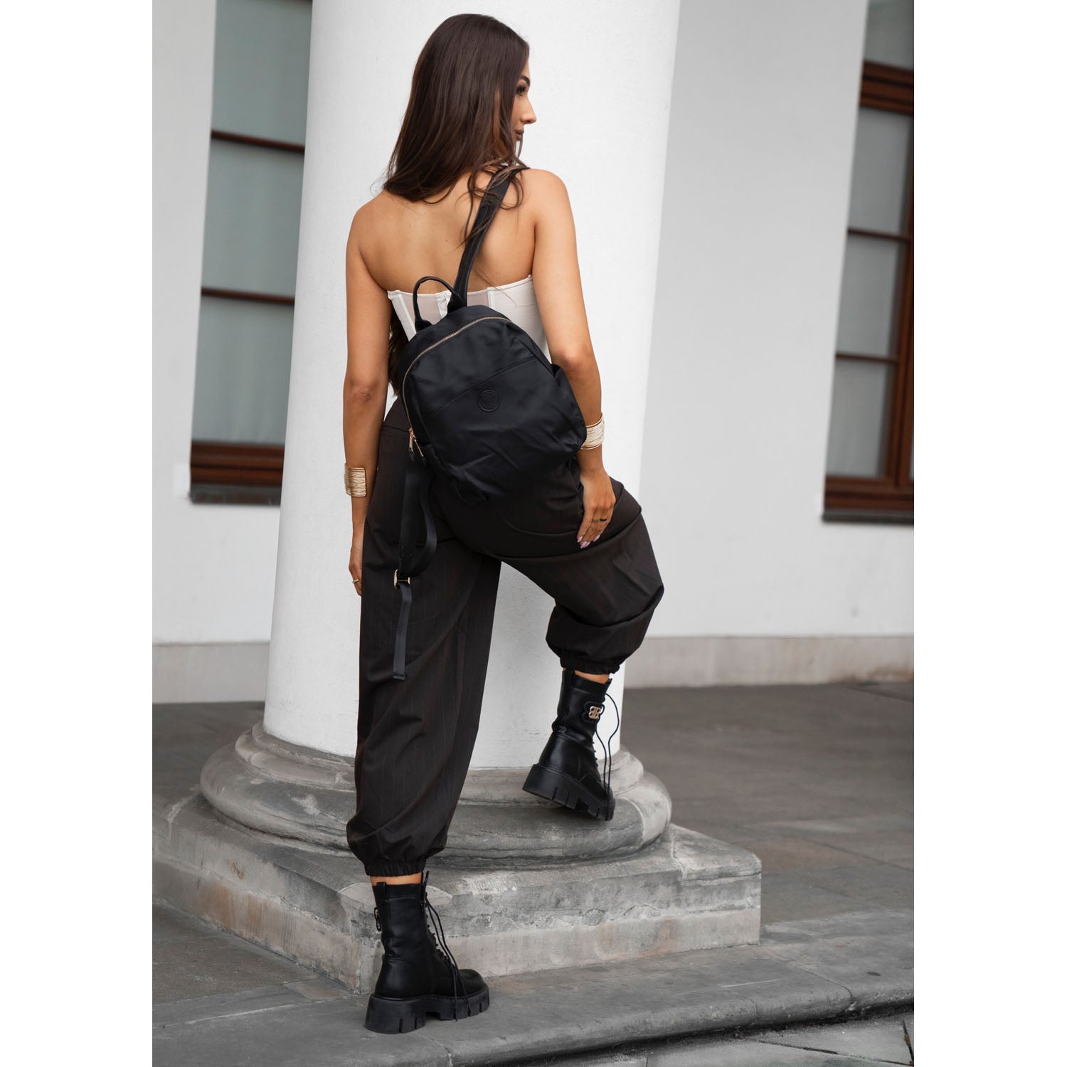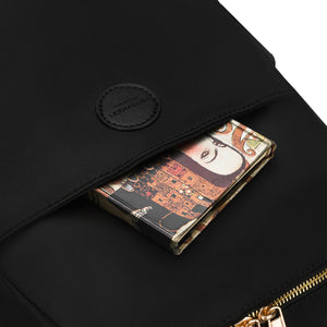 Stilīga un praktiska sieviešu mugursoma ikdienas lietošanai. Melnā Peterson mugursoma ir izgatavota no izturīga neilona un mākslīgās ādas, dekorēta ar smalkām zelta detaļām, tāpēc tā viegli piestāvēs gan ikdienas, gan pilsētas stilam.