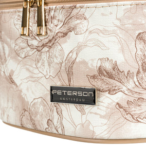 Peterson sieviešu rokassoma no sintētiska materiāla, bēšā krāsā ar ziedu rakstu.