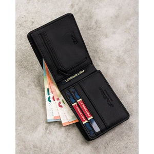 Peterson vīriešu rokassoma, izgatavota no mākslīgās ādas, melnā krāsā, ar RFID aizsardzību.