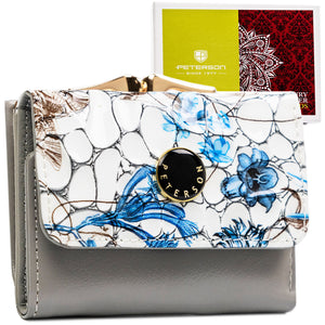 Peterson sieviešu maks, izgatavots no īstas ādas, zilā krāsā, ar RFID aizsardzību.