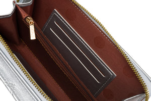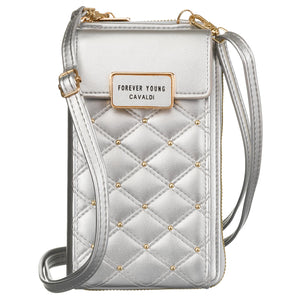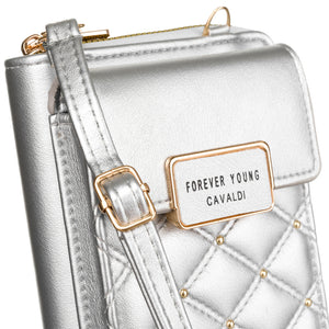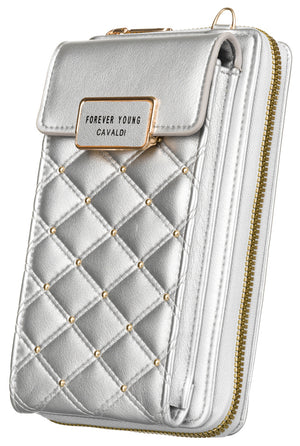 Liela 4U CAVALDI sieviešu rokassoma, kas izgatavota no sudraba krāsas eko ādas, lieliski piemērota ikdienas lietošanai.