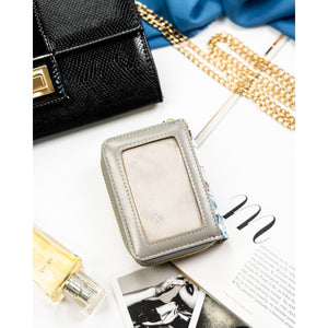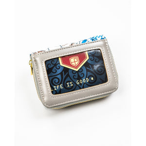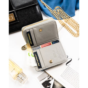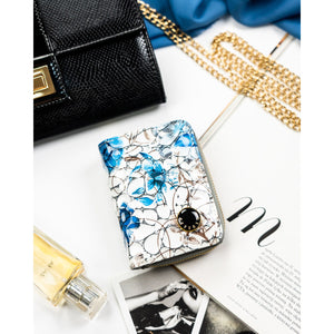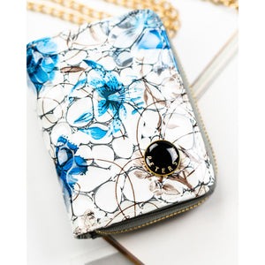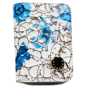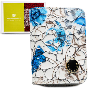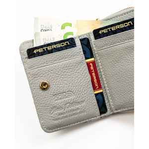 Peterson sieviešu maks, izgatavots no īstas ādas, zilā krāsā, ar aizdari un rāvējslēdzēju.