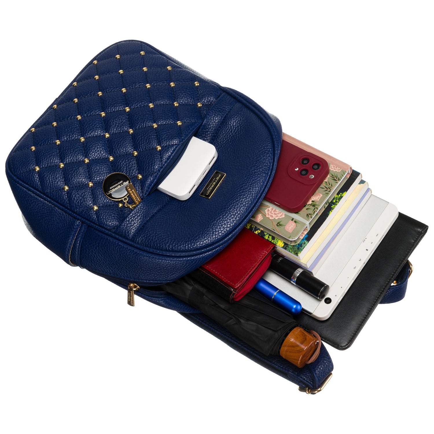 Peterson sieviešu maza zila eko ādas mugursoma, kas lieliski piemērota ikdienas lietošanai.