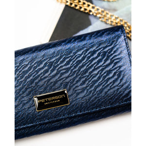 Moteriška mėlyna „Peterson“ piniginė su spaude, su subtiliu raštu ant atvarto, dirbtinės odos ST91