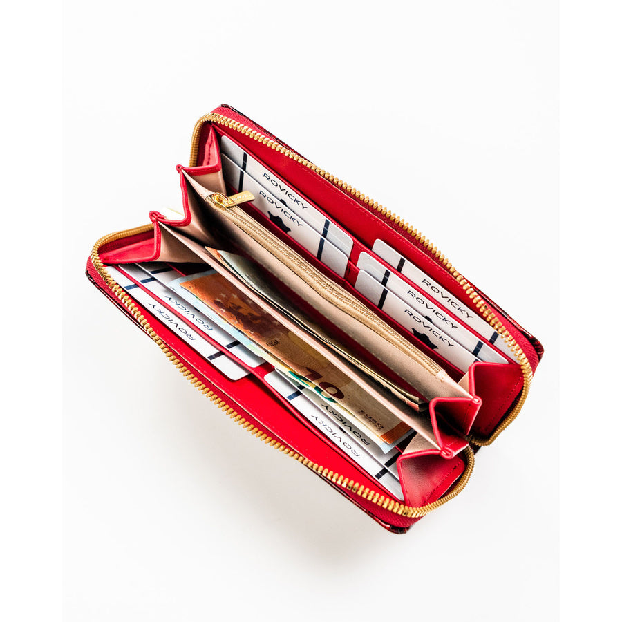 Moteriška „Rovicky“ piniginė–dėklas iš ekologiškos odos, raudona, su gėlių raštu ST98