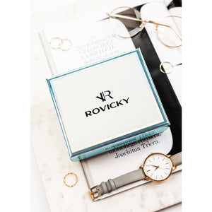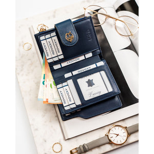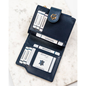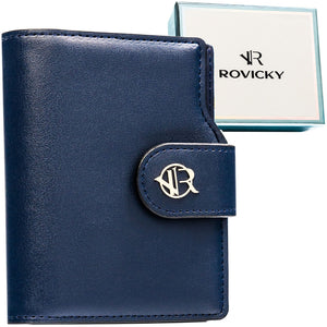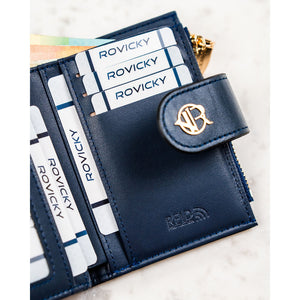 Moteriška tamsiai mėlyna ekologiškos odos piniginė „Rovicky“ su spaude ir užtrauktuku ST68