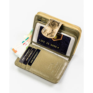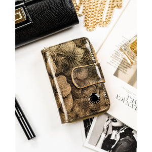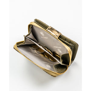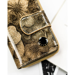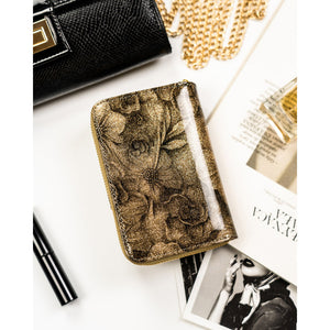 Moteriška vertikali auksinės spalvos piniginė „Peterson“ iš natūralios ir ekologiškos odos, užsegama užtrauktuku ir spaude ST74
