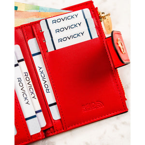 Moteriška vertikali piniginė „Rovicky“ iš ekologiškos odos, raudona, su spaude ir užtrauktuku ST67