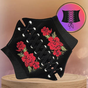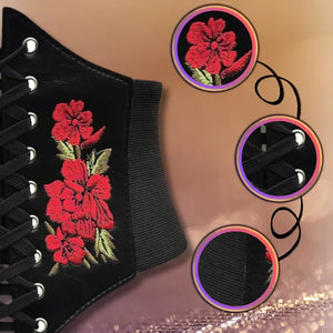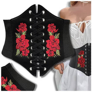 Josta ir izgatavota no elastīga materiāla, aiztaisāma ar 3 sprādzēm aizmugurē un ar šņorēm priekšpusē.