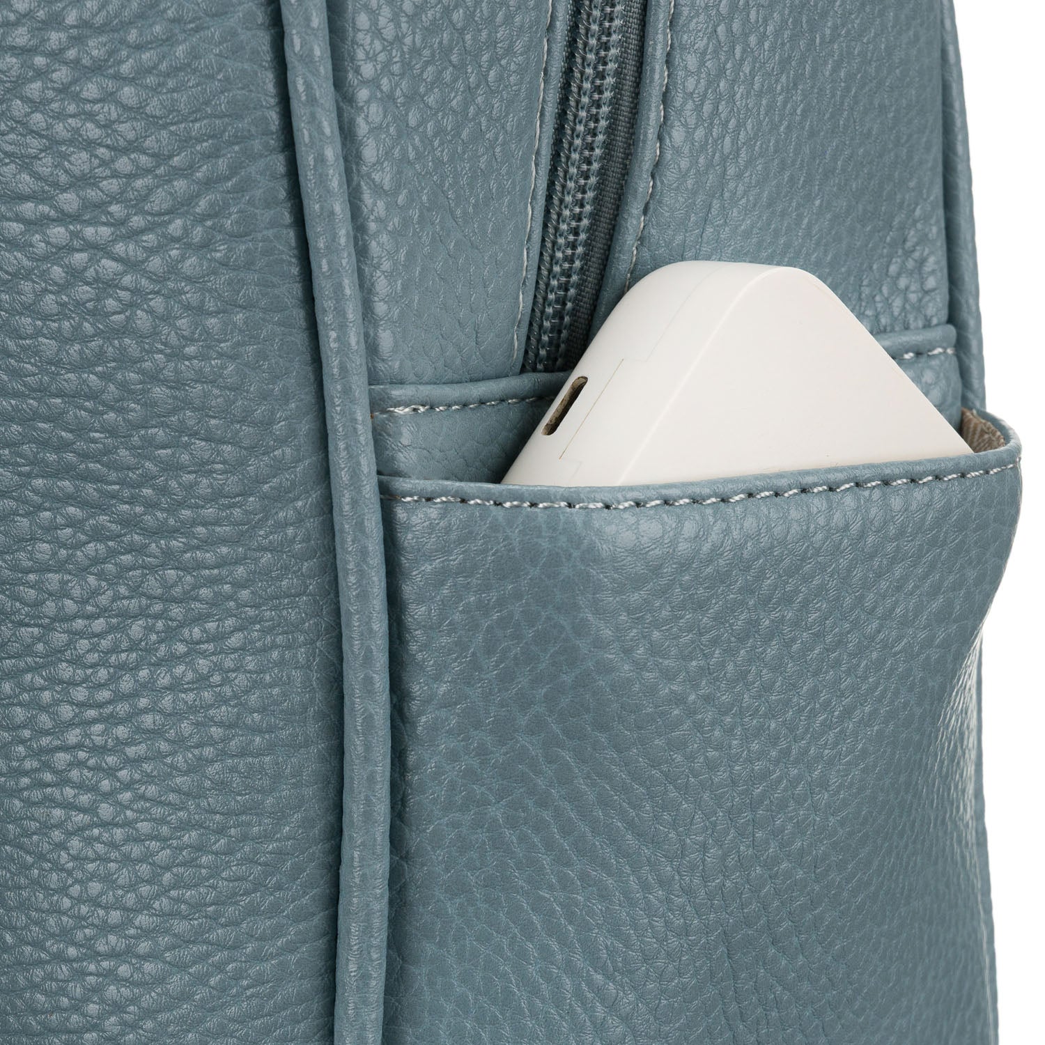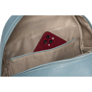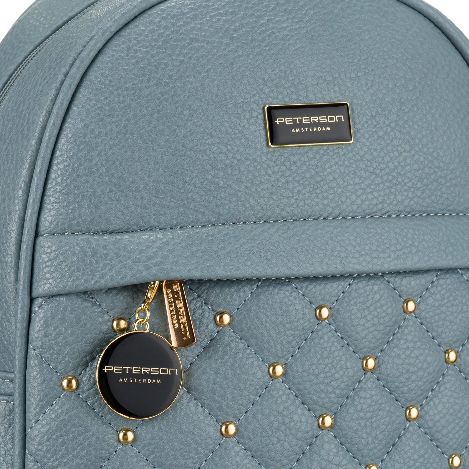 Peterson sieviešu zila maza mugursoma, kas izgatavota no organiskās ādas, lieliski piemērota ikdienas lietošanai.